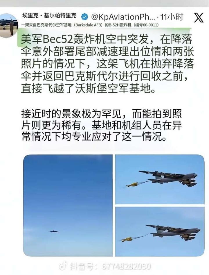 有图有真相?近日刷到有国内自媒体博主说,12月11日美日联合军演时B-52遭不明