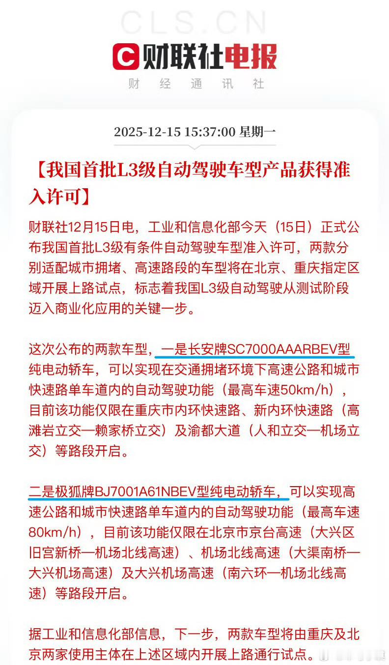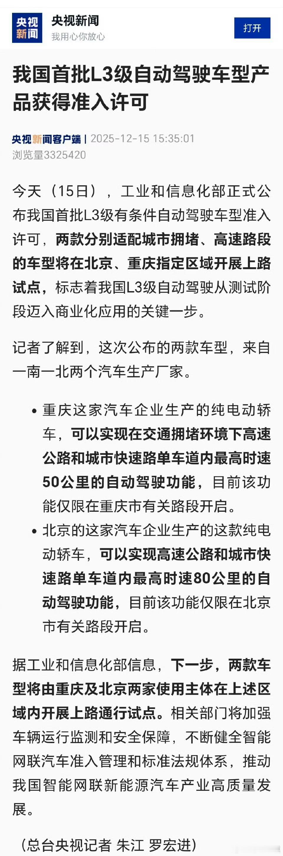 北汽(华为智驾)、长安(地平线方案)正式拿到L3路测门票,问界、尊界等“华为系”选手大概率紧随其后。这步棋走得比预期快,政策开闸意味明显。我觉得吧个人观点:比起参数堆料,试点核心是验证系统在真实复杂路况下的接管逻辑与责任界定,这是高阶智驾商业化的真正门槛。华为的全栈方案和地平线的芯片+算法路线将迎来同场检验,看点十足。深入点: 从法规破冰到用户信任建立,L3的“轻舟”刚驶出第一段激流,大规模普及仍需技术成熟度与配套法规的深度协同。