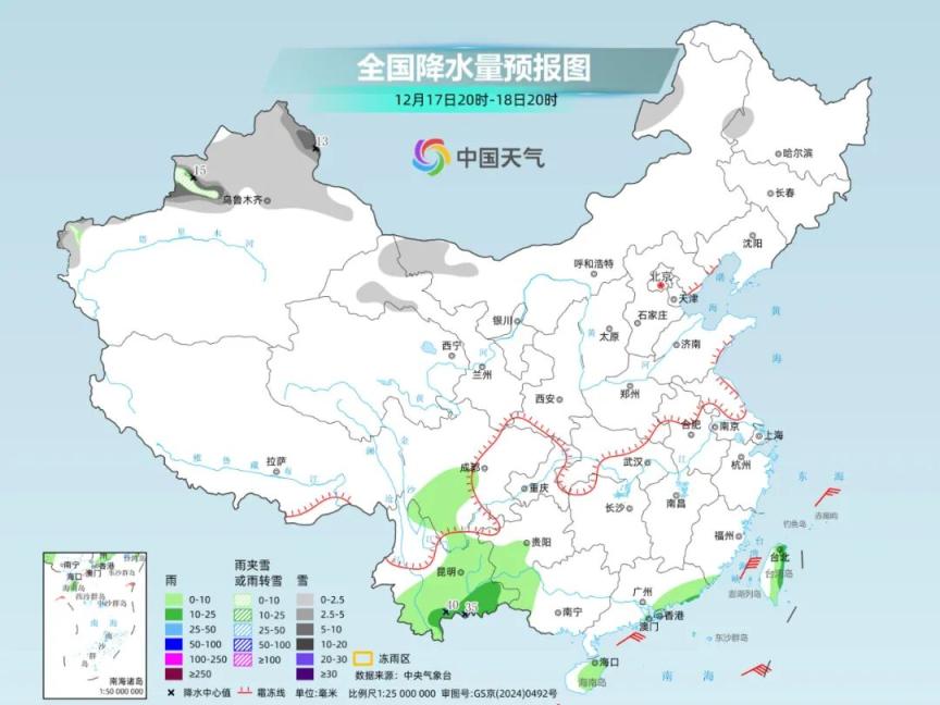 未来三天,南方的降雨总体也较弱。预计18日至19日,华南地区的降雨会短暂增多,广东南部、福建等地局地将有大雨。