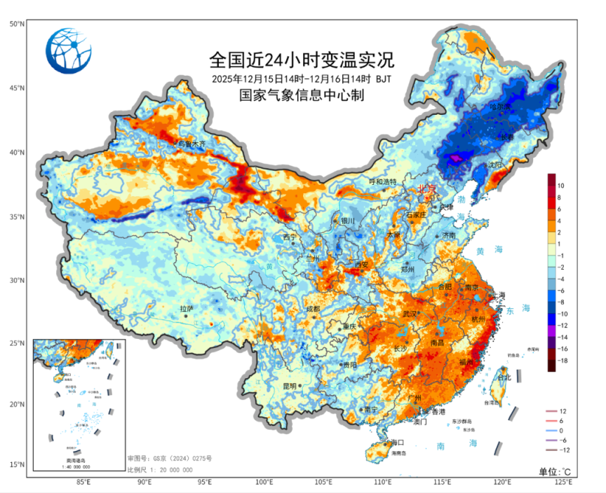 不过,这波“狂飙”的回暖将于19日之后戛然而止。届时冷空气势力增强,全国自北向南将再次迎来明显降温。进入冬至节气后,全国气温将基本回落至正常或偏低水平,重归冬日本色。大家要珍惜眼前的温暖,到周末时也要记得及时换上厚衣服!