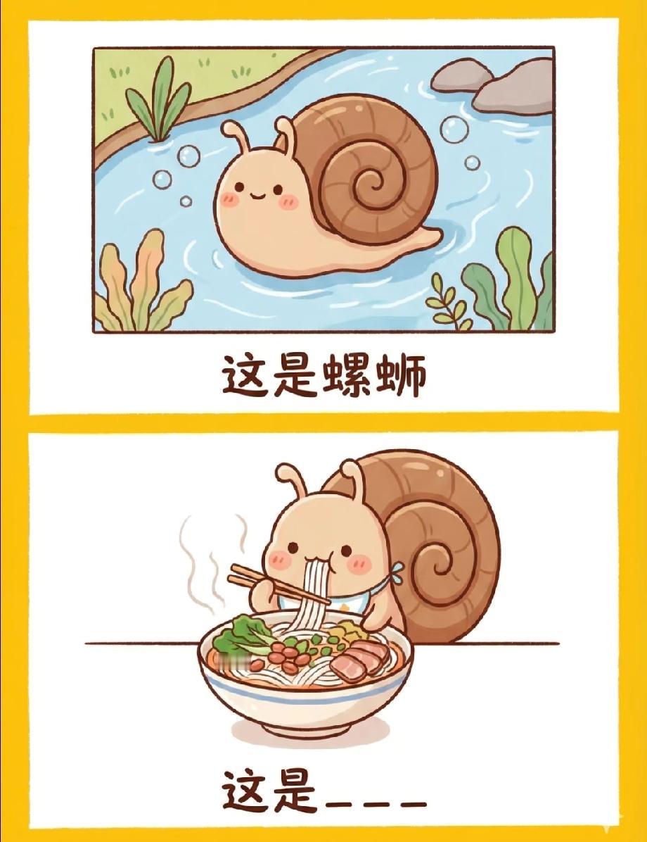 笑不活了!螺蛳在吃粉,这个谐音梗太绝了,评论区猜猜答案是啥!
