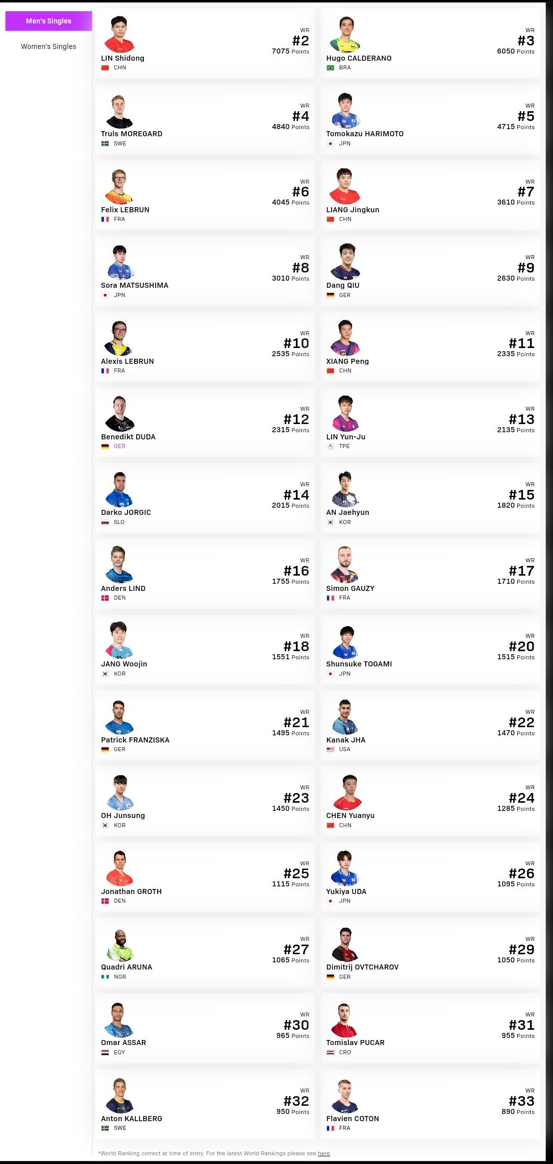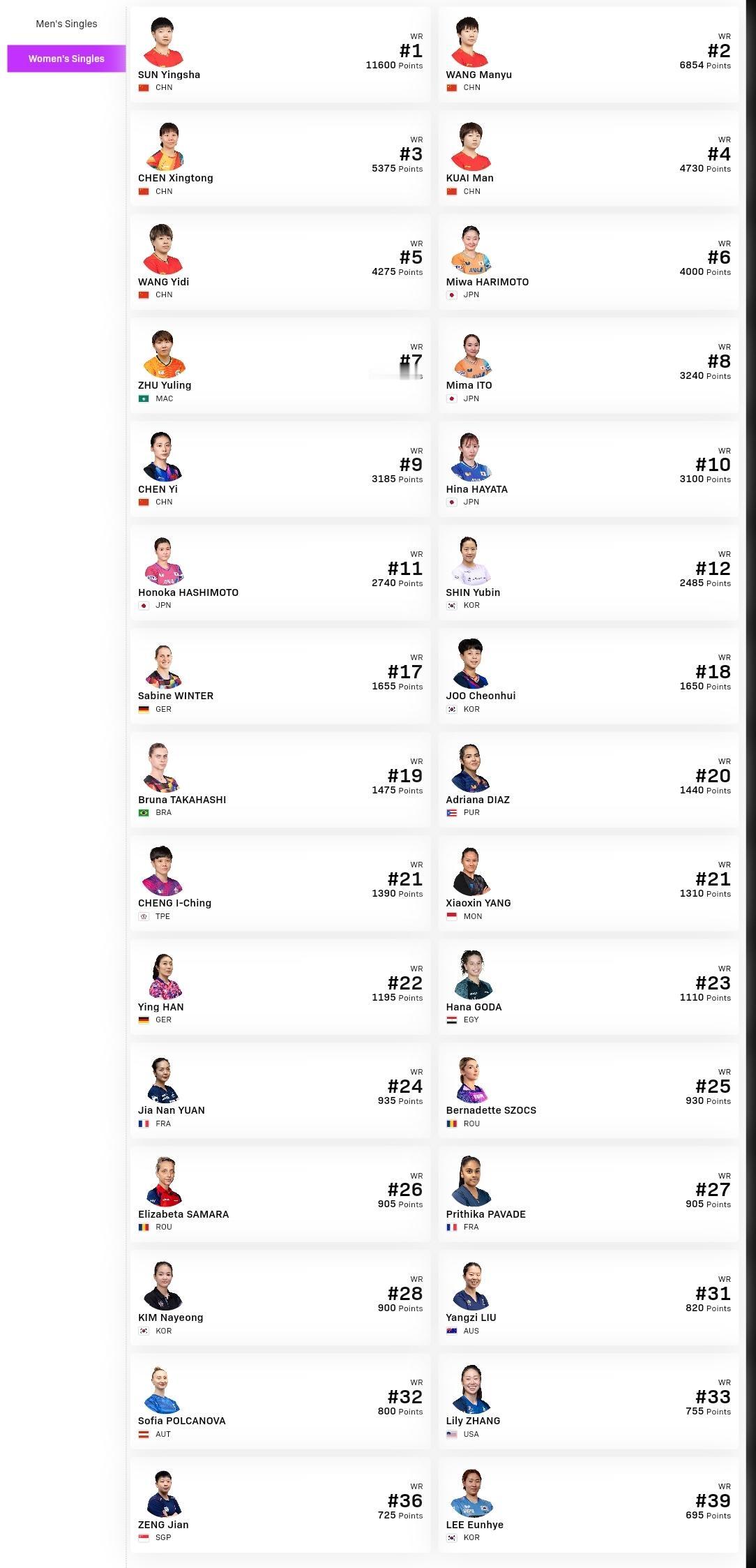 2026年赛季首战,多哈冠军赛1月7号开打,总奖金50W美金。 目前男女各30人大名单已公布,还有各一张外卡一个提名等待公布。 男单林诗栋是头号种子,小伙子要吸取总决赛的经验教训,在冠军赛上力争夺冠拿积分。 女单孙颖莎是头号种子,现在还在名单上,但因总决赛受伤,是否能出战还要看身体情况。