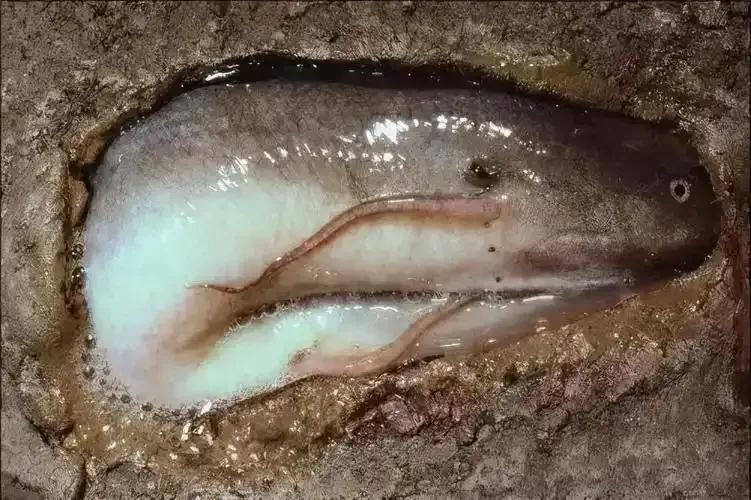 有一种鱼,不需要水也能存活三五年,已经在地球上生存了4亿年,是蛰伏在泥土中的活化石! 非洲有一种鱼,哪怕河水干涸,依然能够存活数月,甚至是数年,彻底打破了鱼离不开水的铁律! 通常在人们的认知里,鱼是离不开水的,否则很快会死亡,但是非洲肺鱼,却与众不同,就算在干涸的泥土中,依然能够存活许久,等到雨水降临,它们便破土而出,恢复了往日的生机,让人称奇! 其实这源于两套独特的生存装备,非洲肺鱼的膘高度特化为原始肺,布满了微血管,能够直接呼吸空气,再配合鳃部实现水陆呼吸切换,这也成为了脱离水仍能存活的核心要件。 当旱季降临,河水退去,它们就要钻入潮湿的泥淤泥中,然后用皮肤分泌出粘液混合泥土,打造出密封的泥茧,仅留出一个小孔用于通气,开启漫长的夏眠。 进入休眠状态之后,便大幅降低了新陈代谢,无需进食,也能长期存活下去,靠的是体内储存的脂肪来维持。 在休眠期,它们会将新陈代谢降至正常水平的1/60,能在无水的环境中,坚守长达3~5年的时间,当雨水渗透泥土,泥茧开始软化,肺鱼便会破土而出,重回水中恢复活动,完成生命的循环,这也是自然进化,赋予它们独特的生存智慧,有了这一套特殊的技能,才能在非洲极端的环境中繁衍生息。非洲肺鱼