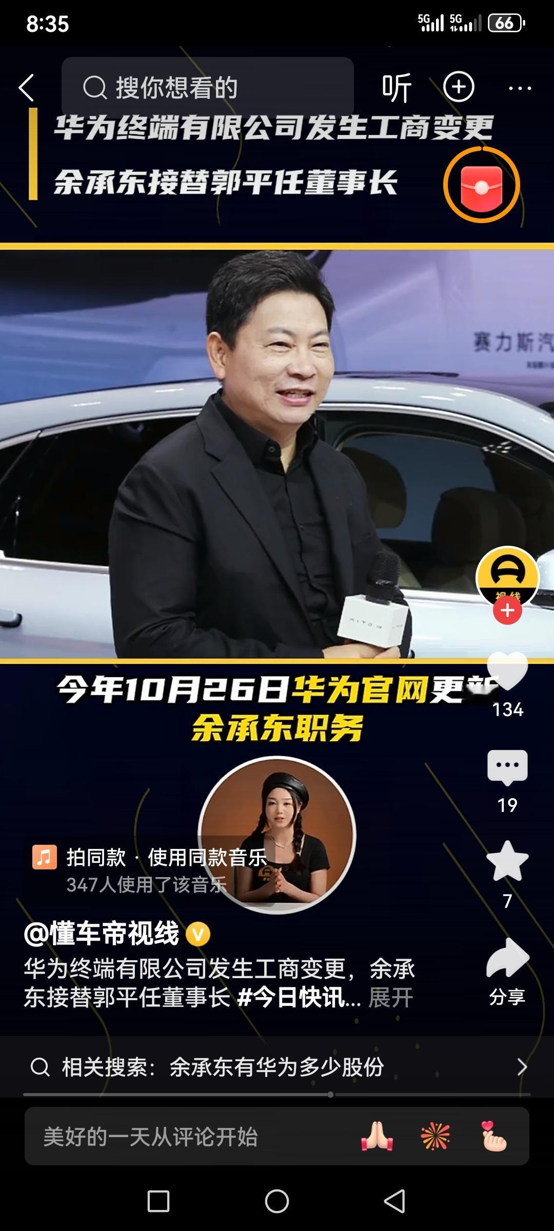 余承东出任华为终端公司董事长余承东接任华为终端董事长,是华为终端发展的新起点!从手机到全场景生态,他的带领总能带来惊喜,期待华为终端在新布局下持续突破,再创辉煌![烟花][烟花][烟花] 余承东 评论打卡任务