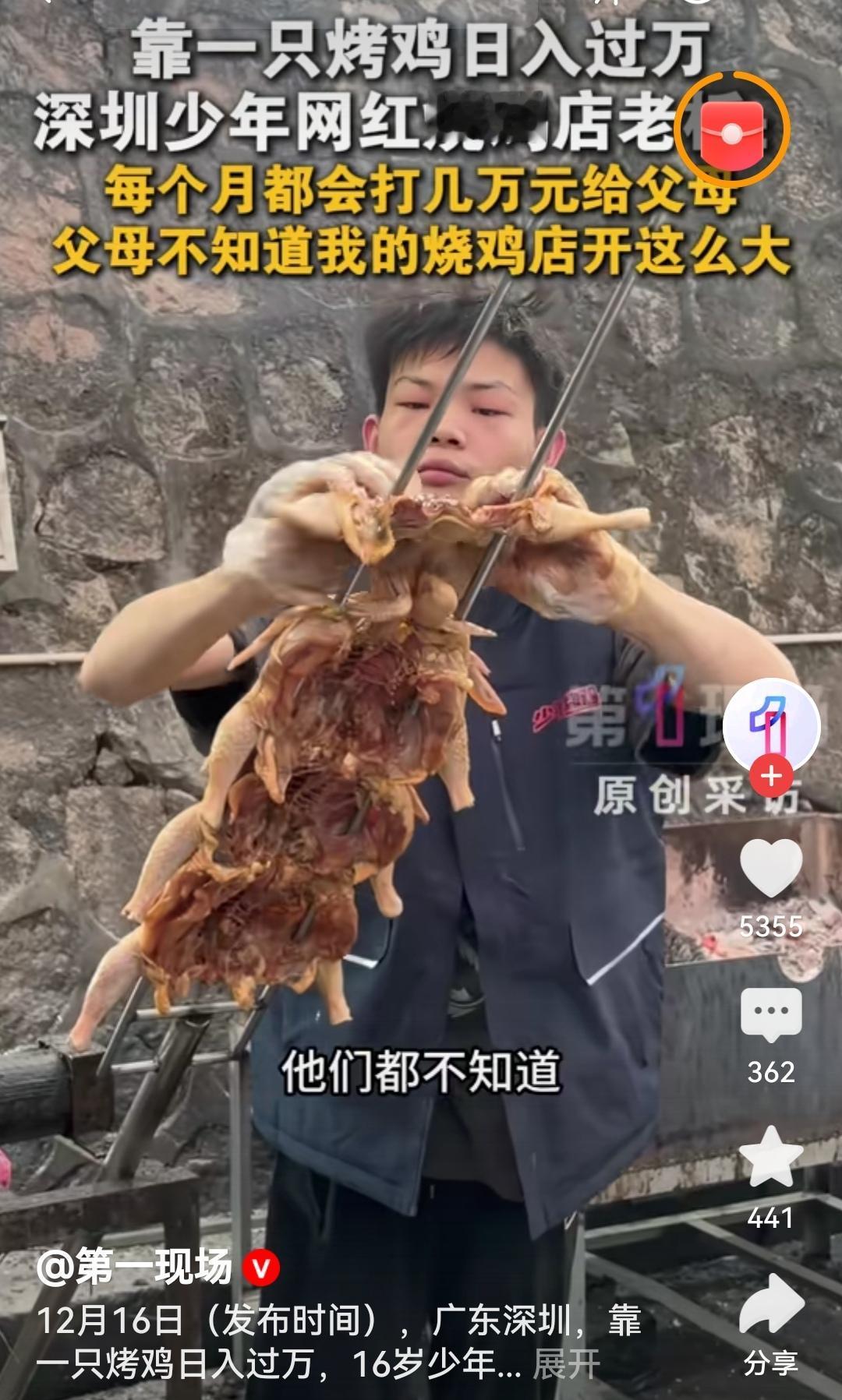 16岁少年开烧鸡店日入过万16岁少年凭手艺把烧鸡店做得风生水起,日入过万还不忘孝敬父母,这股拼劲和孝心太戳人了!少年强则国强,为努力奋斗的年轻人点赞[比心][比心][比心] 烧鸡创业 评论打卡任务