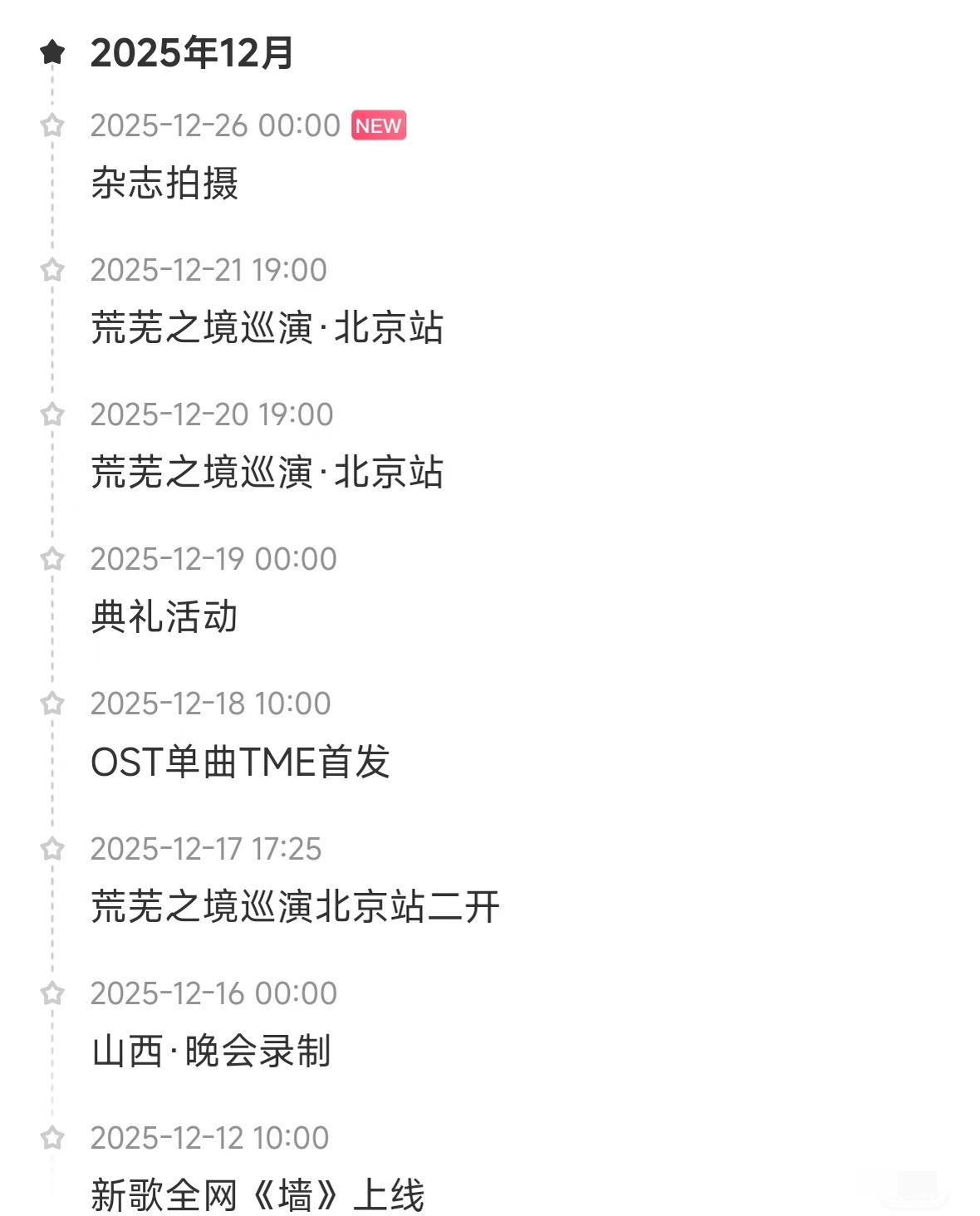 陈楚生才是“闷声干大事”的典型! 他总是会给你想不到的惊喜。 注意‼️他又悄咪咪的更新行程了。 12月中旬以来,两首新歌、两场演唱会和晚会录制等简直就是马不停蹄啊。 新增的行程12月19日会是什么典礼活动啊? 还有12月26日还有杂志拍摄!! 大片就要来了,太期待了🥰……。 生哥就是劳模典范!