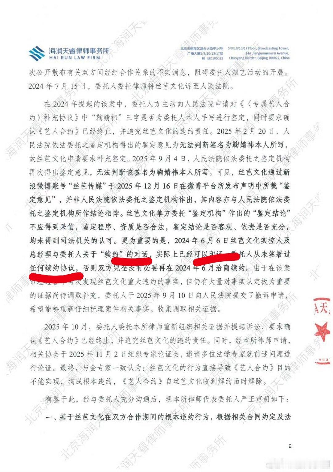 鞠婧祎方艾特丝芭美女,还是太体面了!看了文件,总结有3点:1.对方有拖欠工资,但小姐姐从来没有在媒体上说过,2.对方前后语言逻辑不顺,凭空捏造续约3.签名不符!