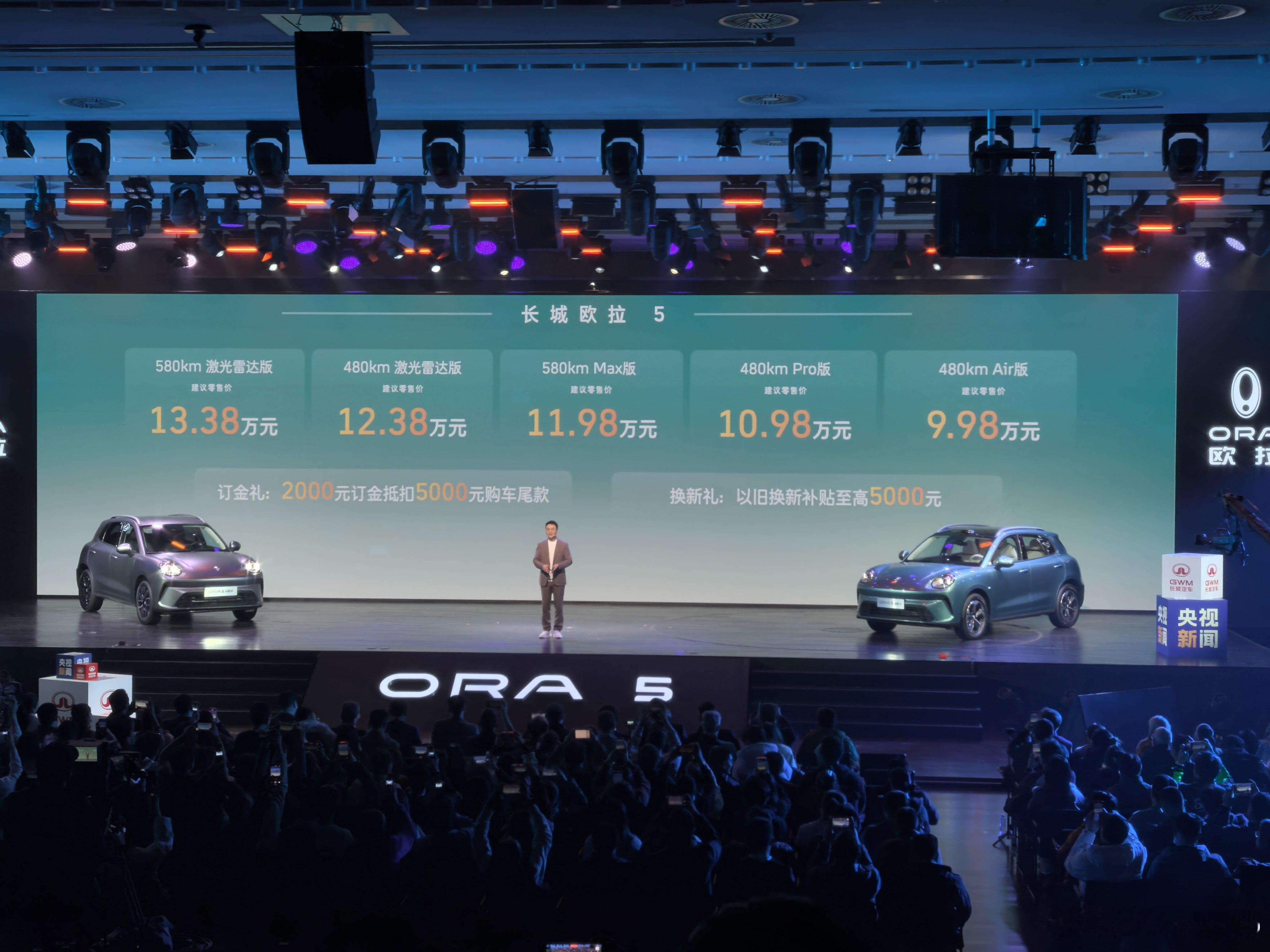 长城欧拉5正式上市,五个配置售价是9.18万-12.58万。差异看车型