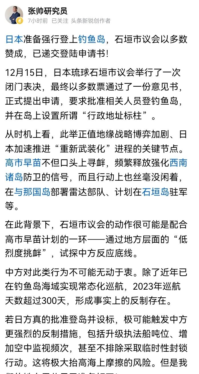 日本要强行登岛,我们要加紧准备了。 我建议咱们要做好三重防护。 岸边由广大钓友组成志愿者团队各自带好渔具准备长期驻扎。 近岸由广大渔民驾驶渔船实施冬捕活动,渔网一定要铺满,能把螺旋桨缠住的那种。 周边有海警编队巡航,防止对方有任何可乘之机。有了这三重防护,保证咱们稳坐钓鱼台!