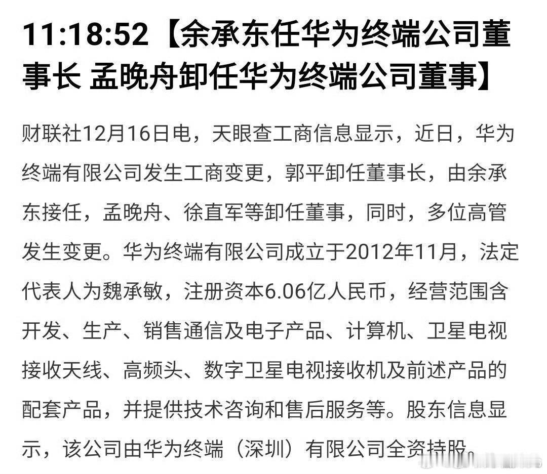 余承东任华为终端公司董事长