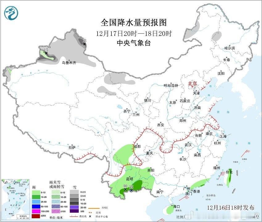 【雨雪】昨晚到今天,我国降水依然稀少,海南万宁出现中雨,为全国最强降雨站点。新疆北部出现小到中雪。从区域自动站看,新疆阿勒泰北部局地积雪超50厘米。未来3天,无论南北方,降水均呈现向东推进的趋势,对应南北两个高空槽东移。明天南方降雨主要在四川南部、云南、贵州和广西部分地区。后天主要还是在云南,云南东南部还会出现中到大雨。同时广东东部沿海降水也初露端倪。18日晚-19日,广东东部和福建南部将有中到大雨。对于云南广东福建来说,此时下大雨,不多见。北方的降雪,未来2天重点在新疆阿勒泰北部,有大雪、局地暴雪,并且可能出现5-10厘米甚至更多的新增积雪。18-19日在天山沿线的降雪也会较强。另外19日高空槽东移发展为冷涡,地面可能还有小气旋,内蒙古东北部和黑龙江西北部将有大雪,局地暴雪。而且积雪效率高,新增积雪可能超10厘米。