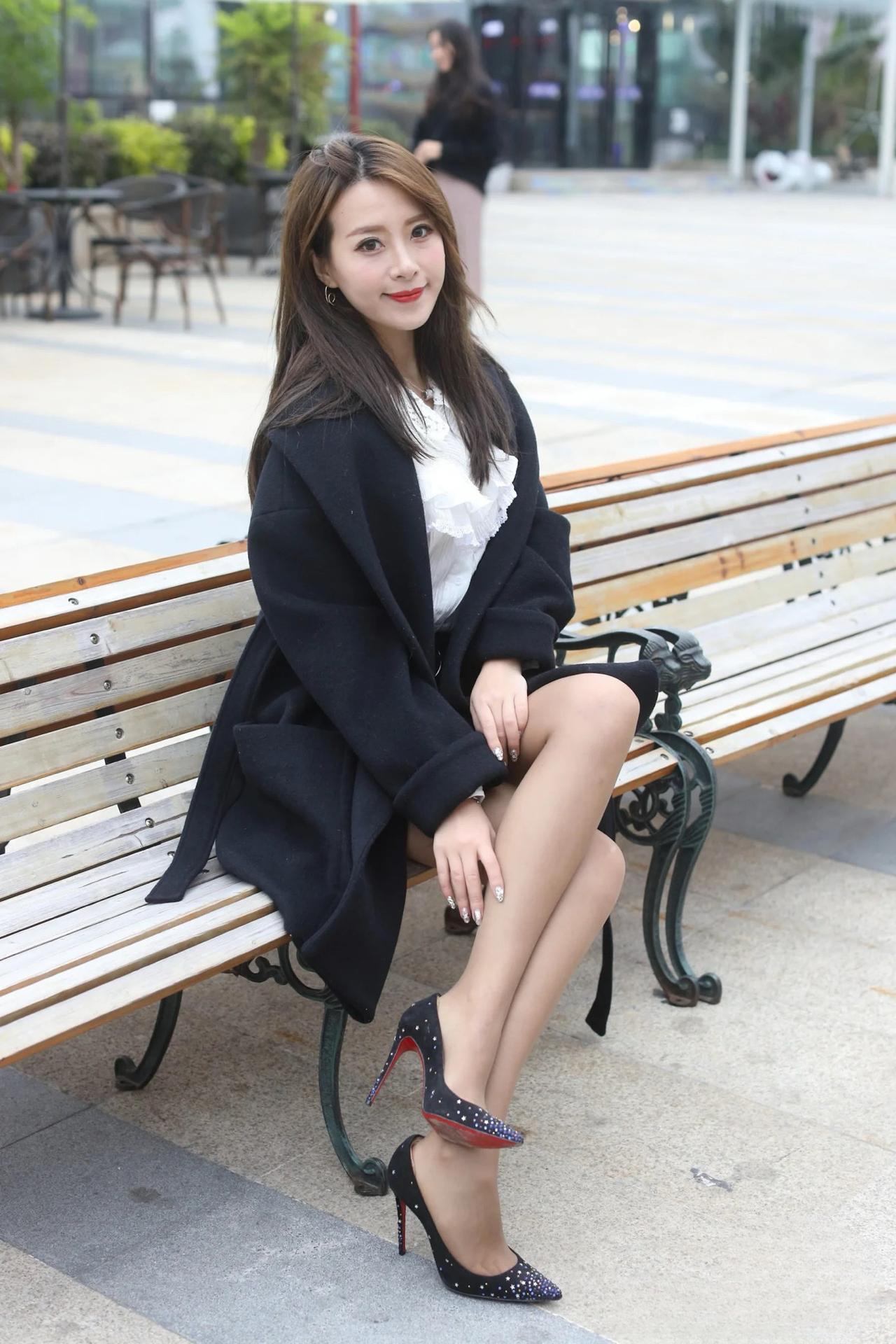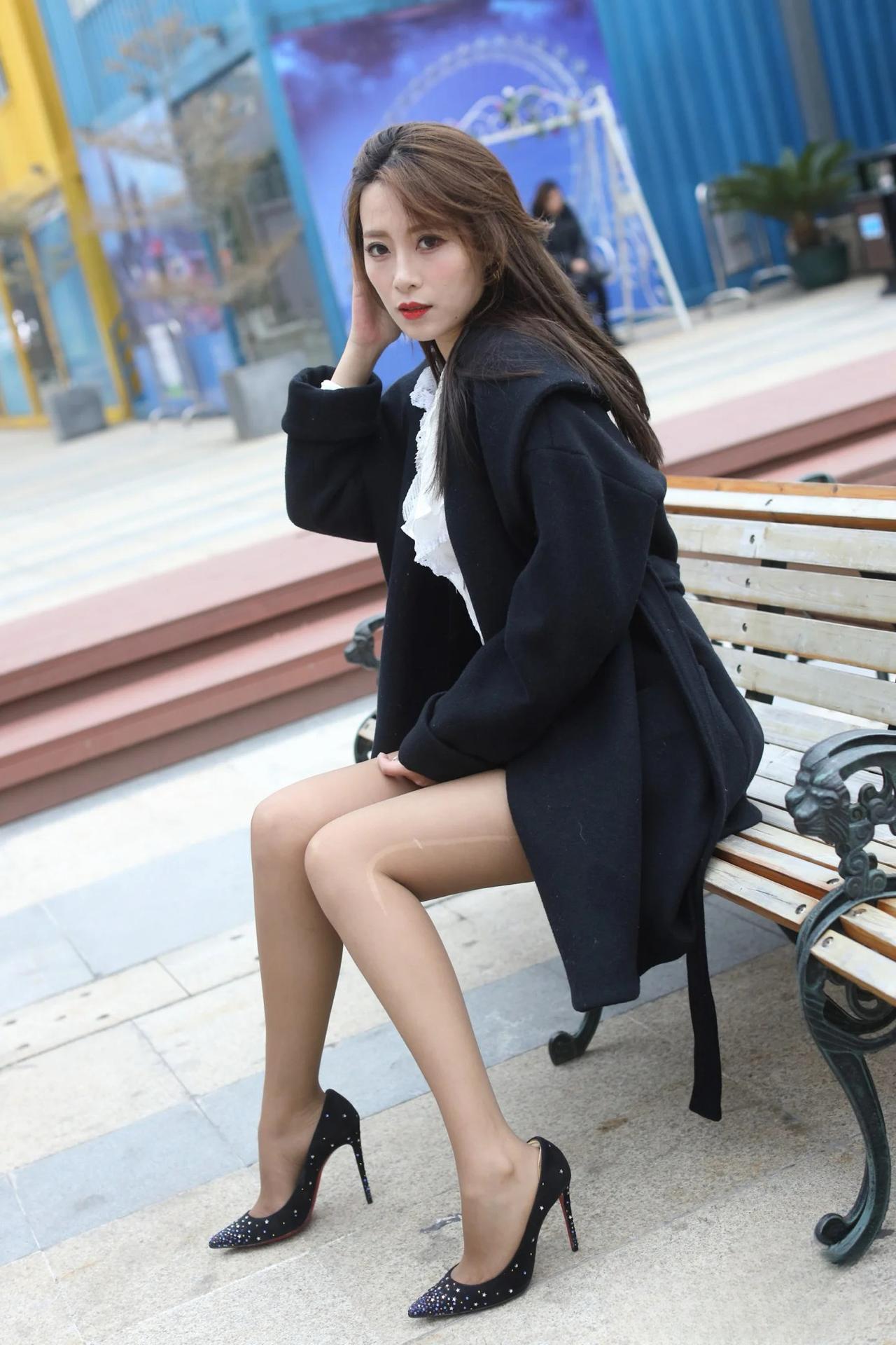 优雅秋日穿搭,灰色大衣搭配黑色丝袜,尽显时尚气质!