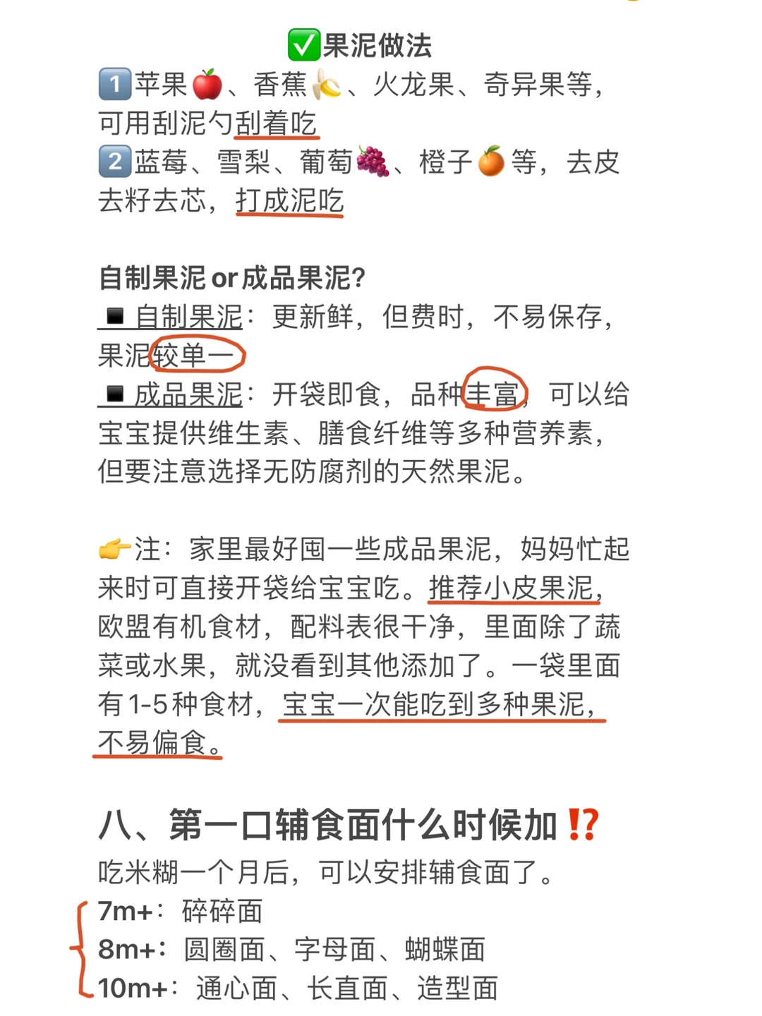 1️⃣初期阶段宝宝吃的量很少,以单一果泥为主,可以选择自制,方便可以给宝宝排排敏。但自制果泥容易氧化不易保存,需现做