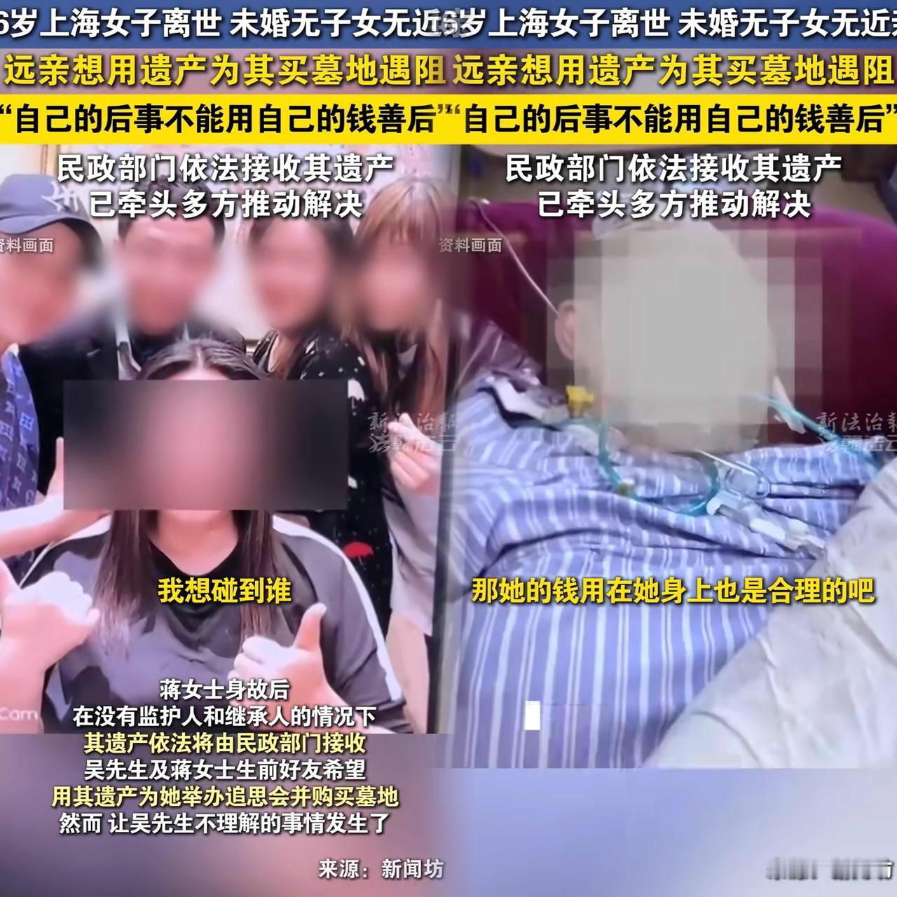 上海这种事以后怕是要屡见不鲜啦! 那些无儿无女无亲人的,突然离世后,留下的房产动辄大几百万,最后却被 民政收走,想想都觉得亏得慌。 这背后其实反映出当下社会一个很现实的问题,就是很多人在生前没有做好财产规划。 要是提前立好遗嘱,把财产分配得明明白白,也不至于出现这种情况。 而且这也不只是钱的事儿,还关乎着每个人对自己身后事的安排和心愿。 咱们不能稀里糊涂地过日子,得有点未雨绸缪的意识。 大家说是不是这个理儿?要是你,会提前做好财产规划吗?快来评论区说说你的想法,咱们一起探讨探讨!