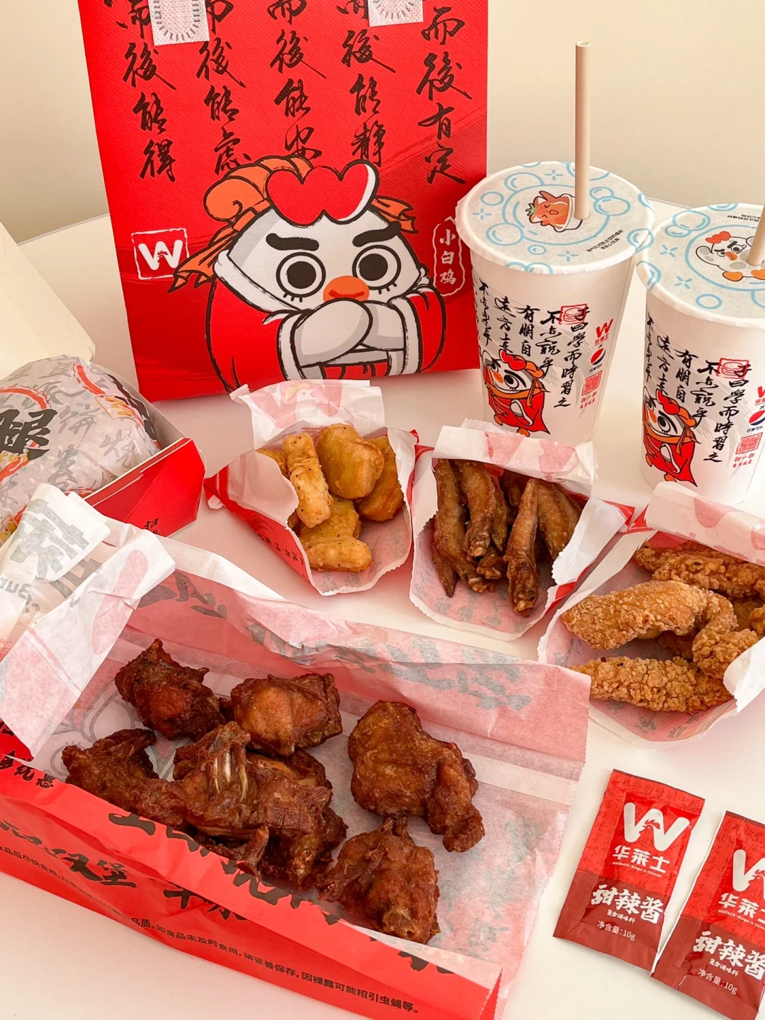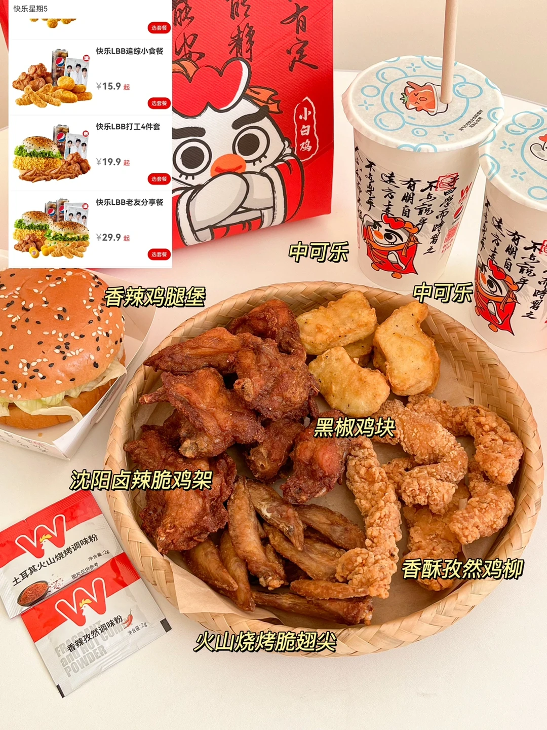 香酥孜然鸡柳+黑椒鸡块+沈阳卤辣脆鸡架+可乐+明信片