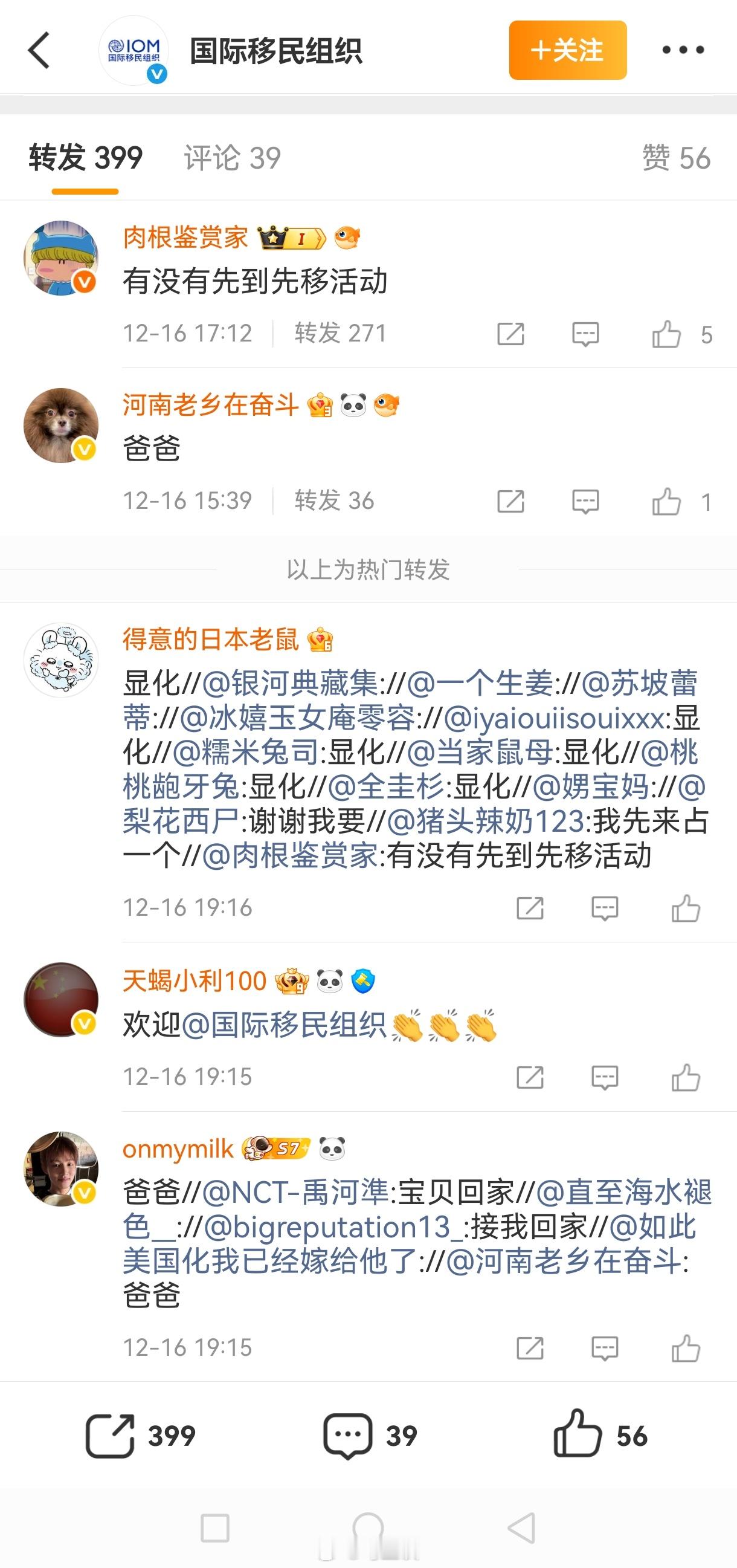 刚刚“国际移民组织”入驻微博,大家猜猜转发评论区会是啥样子?抽象的事来了!一群抽象人在那里喊爸爸…真丢脸啊😫😫😫