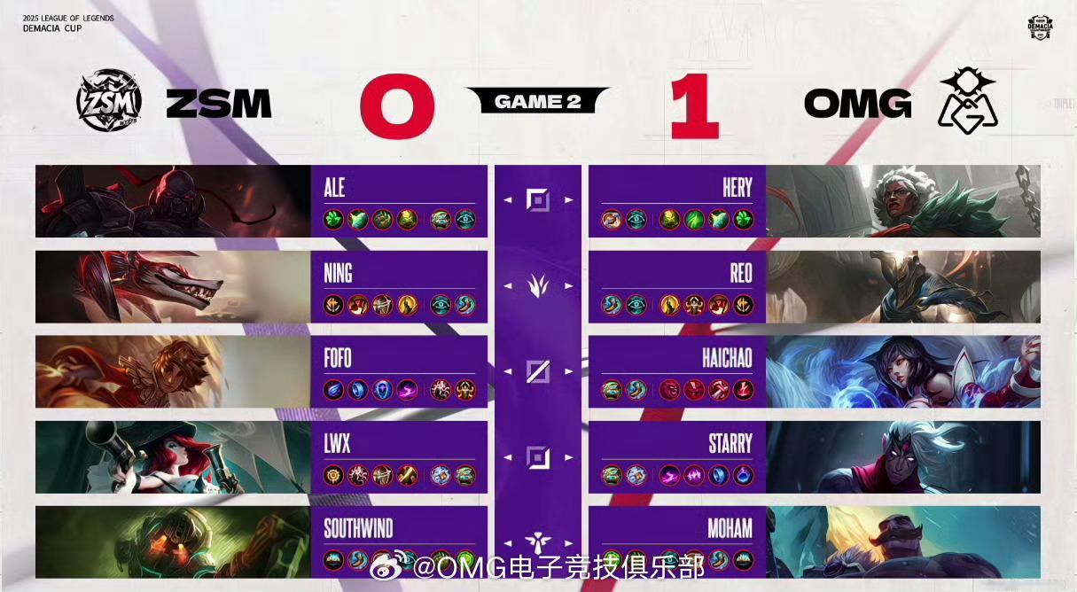 【2025德玛西亚杯 第一阶段】OMG VS ZSM 第二局,阵容如下:2025lpl英雄联盟