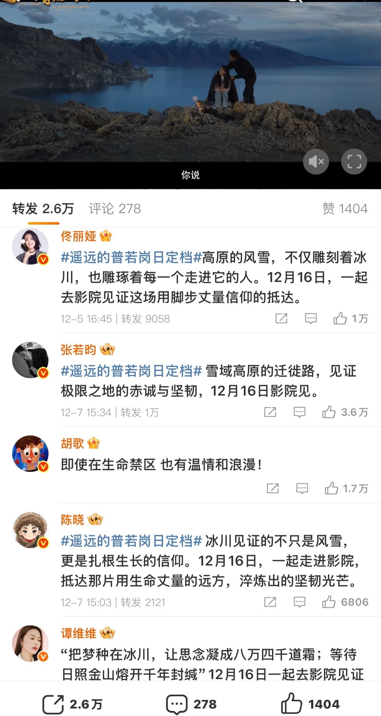 半个娱乐圈都来普若岗日团建了啊啊啊啊真半个娱乐圈都来了光这打call阵容就让人稳稳的很安心~王凯、宋茜、胡歌…都在这部《遥远的普若岗日》!主演唐诗逸带队冲上5000米高原,实拍冰川、旷野、野牦牛…心形冰川美到窒息,眼睛和心都被净化了,这波我先冲为敬!