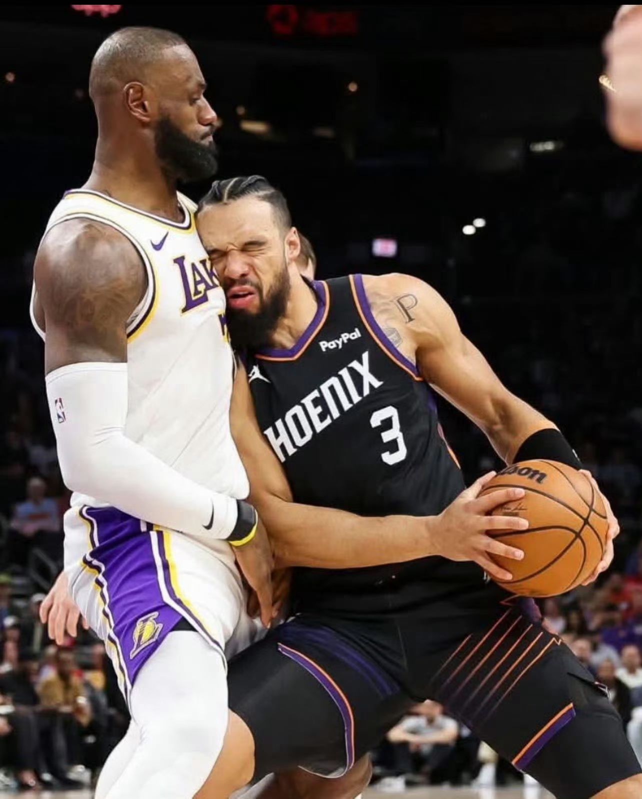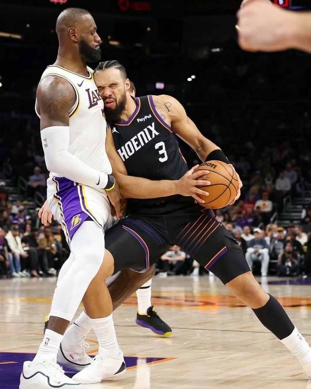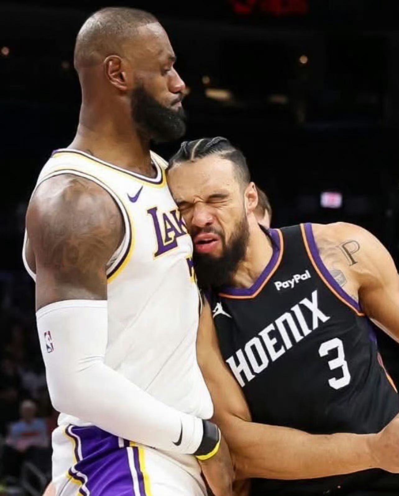 虽然嘴上一直在输出现的自己很硬,但是身体很诚实!撞到詹姆斯好像撞到一堵水泥墙!湖人vs太阳洛杉矶湖人