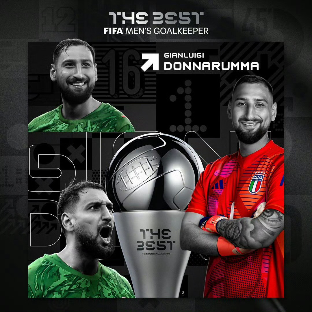 2025年国际足联各项年度最佳奖项,多纳鲁马当选2025FIFA年度最佳男足门将。FIFA年度最佳球员奖项评选的周期是球员在2024年8月11日至2025年8月2日之间的表现。多纳鲁马凭借上赛季随巴黎夺得法甲、欧冠、法国杯、法国超级杯冠军,47场比赛丢43球完成17次零封的表现,击败阿利松、库尔图瓦、马丁内斯等多位候选者。多纳鲁马