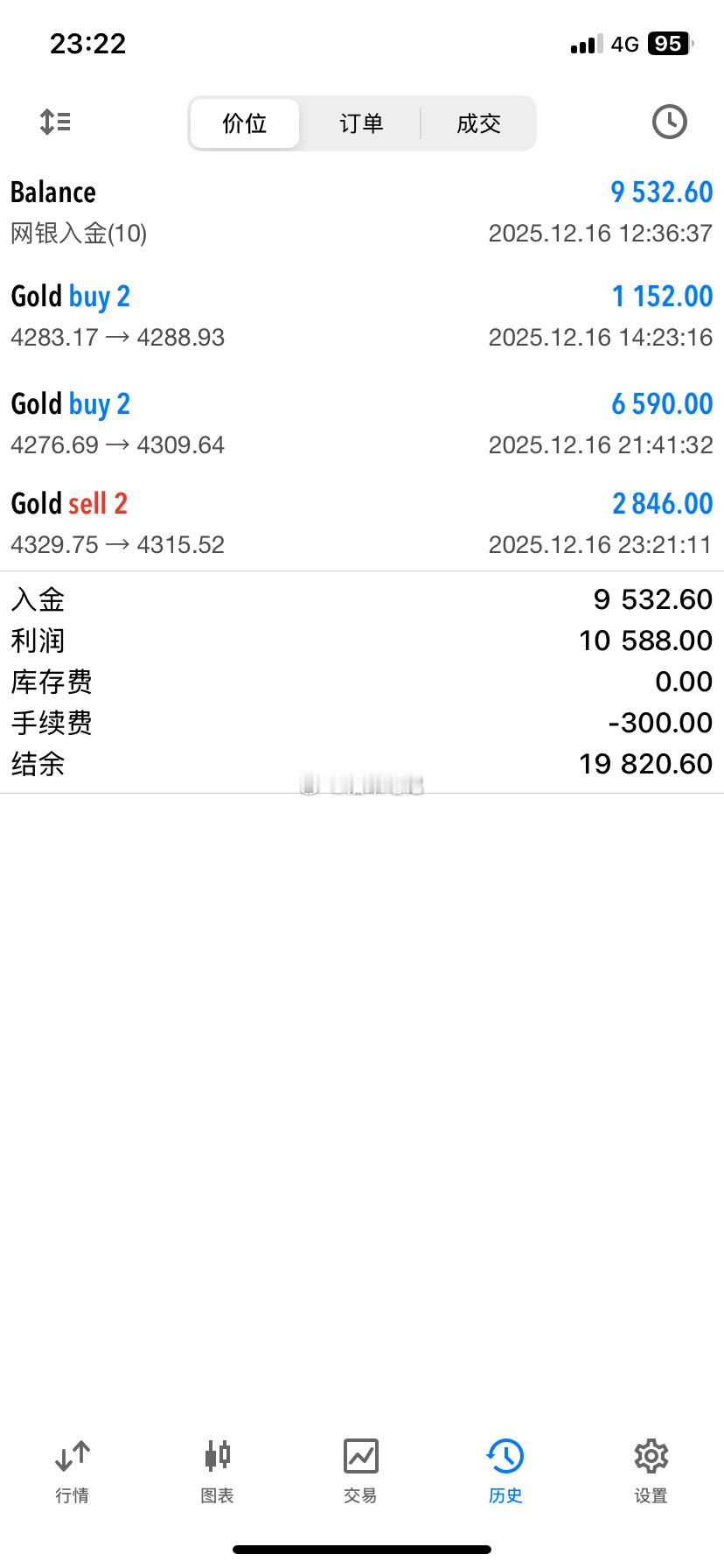 12.16日共操作3单斩获590个点,今天操顺利三单全胜!行情时刻都在,大家保持关注,让我们在投资市场上共同创造出一份属于我们的辉煌! 我们每天再战,晚安!