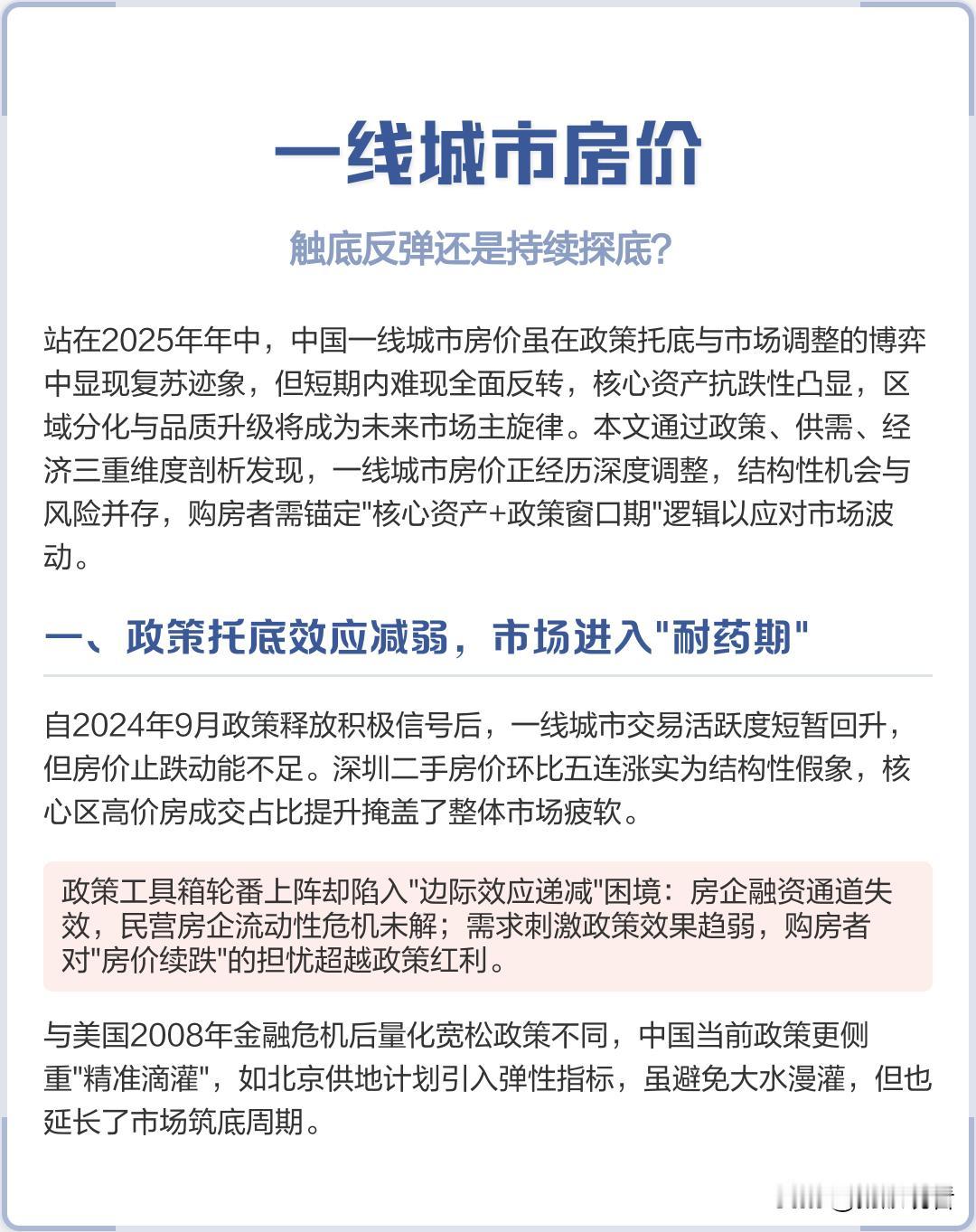 一线城市房价调整加快!刚需/改善该上车吗?🤔 2025年11月一线房价数据太扎心了!新房环比降0.4%,二手房直接大跌1.1%📉,调整速度肉眼可见加快,不管是刚需观望还是改善置换,都得把背后逻辑捋清楚,不然容易踩坑也容易错过机会! ✅ 先搞懂:为啥突然降这么快?3个核心原因戳透! 1️⃣ 供给端卷疯了,库存压顶只能以价换量 10-11月一线新房供应暴涨,环比直接涨14%-23%,全是主打改善的高品质新盘,抢客竞争超激烈,去化率上不去只能降;二手房更夸张,库存高到离谱,300万以下低价房成交占比飙升,挤压改善置换需求,业主想套现只能主动降价,直接拉低整体均价! 2️⃣ 需求端观望拉满,再低利率也不敢动 现在大家收入预期不稳,加上“买涨不买跌”的老心理,哪怕首套房利率跌破3%💹,刚需和改善也不敢轻易入市!11月居民中长期贷款只新增100亿,比去年同期少太多,购房意愿低迷到极致,需求撑不起来,房价自然扛不住! 3️⃣ 不是全面跌!结构性分化超明显,别踩错板块 千万别误以为一线全在跌!上海就是例外——新房环比微涨0.1%,同比还涨5.1%✅,核心优质改善盘、核心地段资产抗跌性超强,毕竟产业稳、人口流入稳;但北京、广州、深圳不管新房二手房都在跌,尤其是深圳新房环比跌0.9%,产业结构、需求结构差异,直接导致走势天差地别! 💡 刚需/改善必看:现在该上车还是再等等? 👉 刚需:如果是核心地段刚需盘(近地铁、配套全),现在价格回调+低利率,遇到性价比高的可以果断入手,毕竟刚需是自住,长期来看核心区域稳;非核心远郊盘别碰,后续可能还会跌! 👉 改善:优先盯上海核心改善盘或其他城市优质板块次新房,避开高库存、配套差的板块,现在置换可以“卖旧买新”,议价空间大,反而能淘到好货! 👉 观望党:不用慌,当前是市场消化库存、供需再平衡的过渡阶段,后续公积金改革、存量房转保障房等政策落地,房价会慢慢稳下来,重点盯核心资产,避开冷门板块! 📌 最后总结:一线房价已告别普涨,选对才是关键! 现在一线楼市早不是闭眼买都赚的时代了,调整加快是供需、预期、政策共同作用的结果,也是存量时代的正常过渡📈。后续房价会逐渐趋于稳定,但分化会越来越明显——核心资产抗跌,冷门板块仍有回调空间,不管刚需还是改善,别追跌也别盲目观望,盯紧核心地段+优质配套,才是最稳妥的选择!
