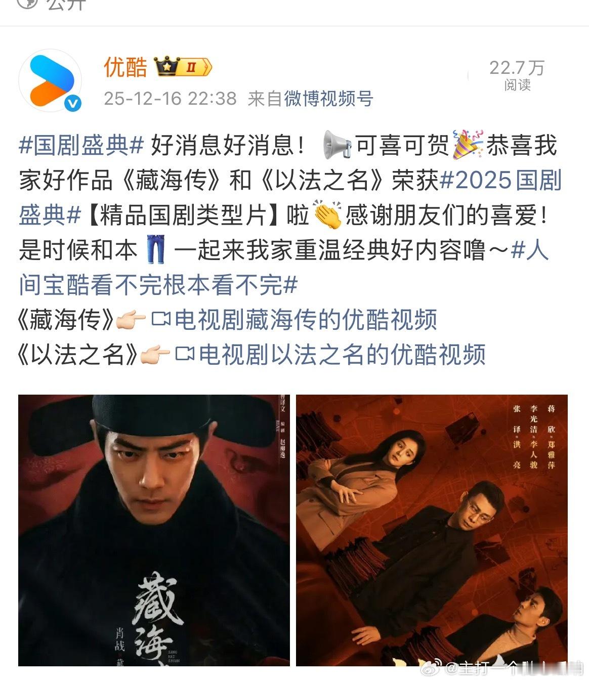 藏海传荣获2025国剧盛典【精品国剧类型片】,裤子得瑟