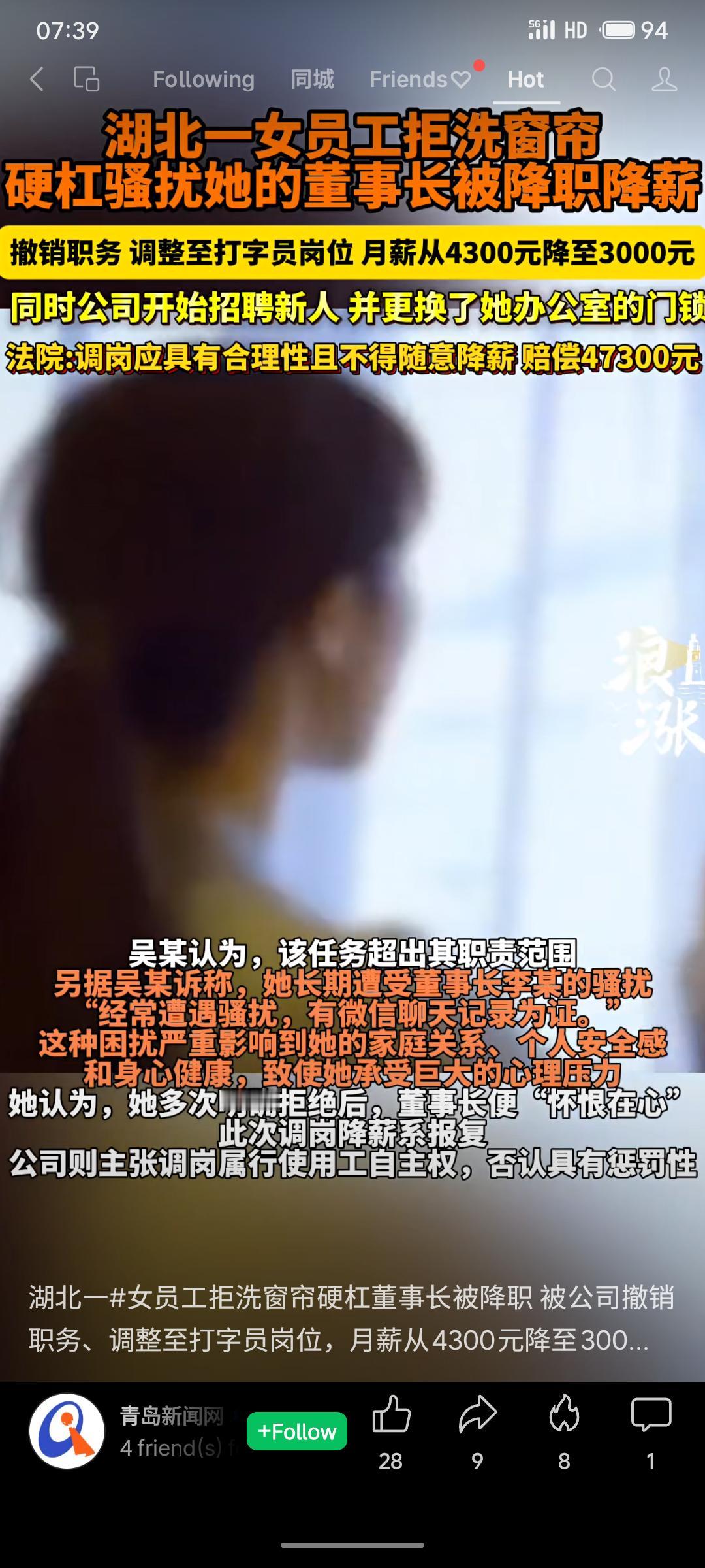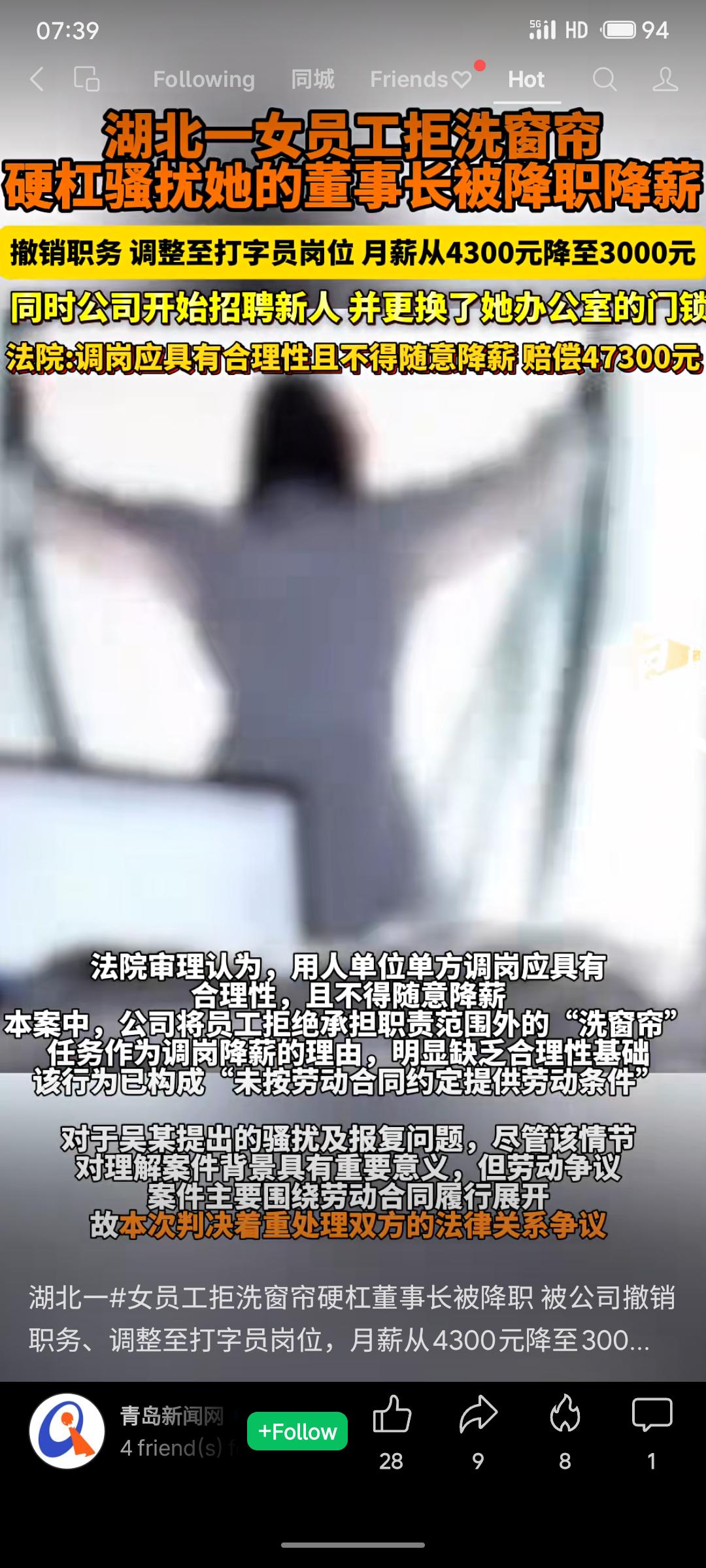 你坚持创作的原因是什么湖北一女员工因拒绝清洗办公室窗帘,被公司降职降薪并调岗。法院审理认为,调岗缺乏合理性,属于未按劳动合同约定提供劳动条件,判决公司支付经济补偿及未休年假工资共计5万余元。该案明确用人单位不得滥用调岗权变相惩罚员工,维护了劳动者合法权益。