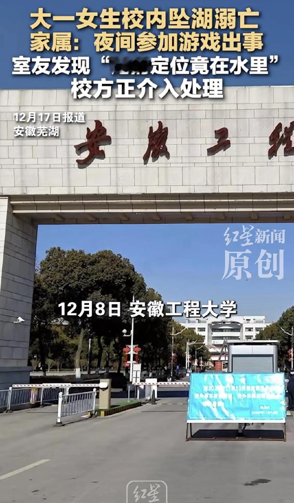 关于安徽某高校大一女生晚间坠湖一事,与家属不一样的声音出现了。 家属说是在校参加“猫抓老鼠”游戏时掉进湖里,但很多安徽IP的网友说游戏(二课)在下午2点25到5点点25,而女生出事在晚上。 据称女生掉进学校的河道里,也不是那个大湖。学校里的大路离河道很远,岸边有坡,离湖近的小路平时很少有人走。 这所高校分东西校区,东校区有很多小湖,有个湖还刚好在两栋教学楼之间。 湖边的树木很密,路灯少且暗,晚上视野受限。 有很多大学内湖都是没有护栏的,装不装护栏并不是硬性指标。 女生具体坠湖原因,以官报为准。 就是很可惜,刚上大一,又即将寒假结束回家过年,却出了这样的事,家属节哀吧! (内容来源网络)