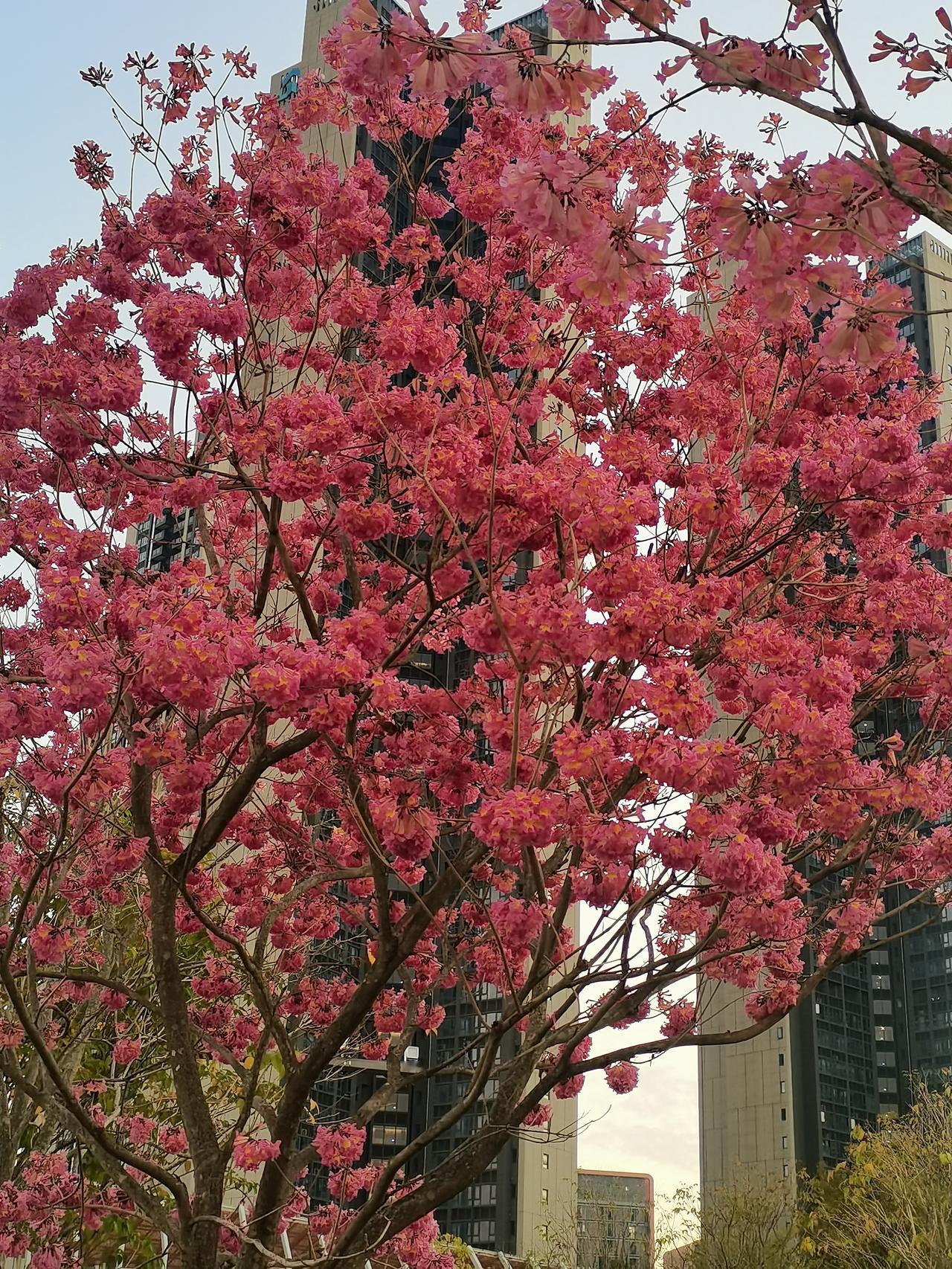 被一棵树吸引的瞬间,不是满树的花团锦簇,是因为树头那几片即将离去的落叶🍂 童年的冬天是和大雪向伴的季节,童年的冬天必须要堆几次雪人、打几回雪仗,在雪地里奔跑欢呼,看到雪地上小动物留下的足迹,总想沿着走下去一探究竟。 深圳的冬天也很美,美得让人分不清季节,深圳的冬天既有异木棉的妩媚,也有紫花风铃木的浪漫。
