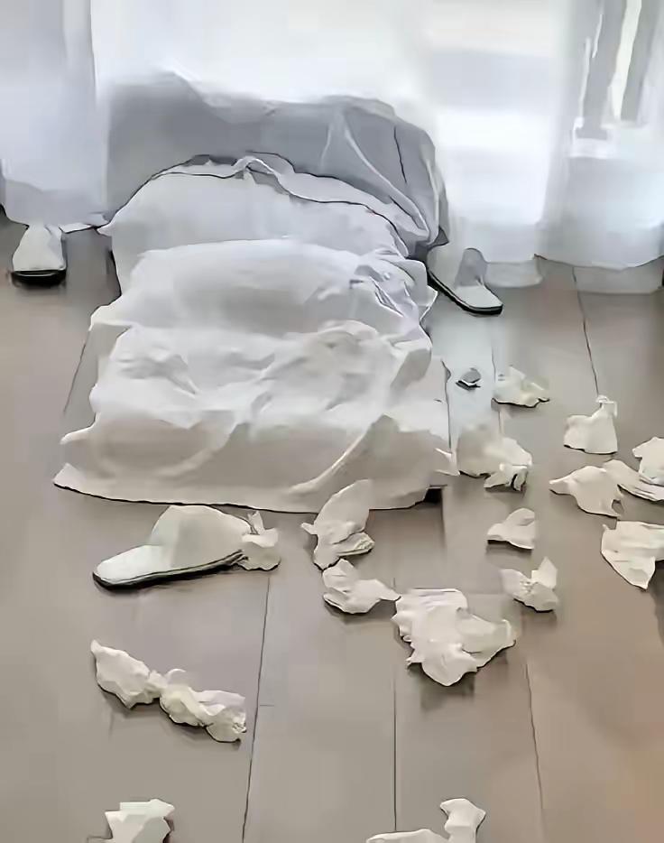 酒店里三男一女开了一间钟点房,3个小时收费100元,等他们走了,保洁阿姨收拾卫生发现满地都是卫生纸和避孕套,把被子都拿到了地板上了,这样的情况是不是太让人生气了,你们只顾玩了,不顾别人的感受吗?