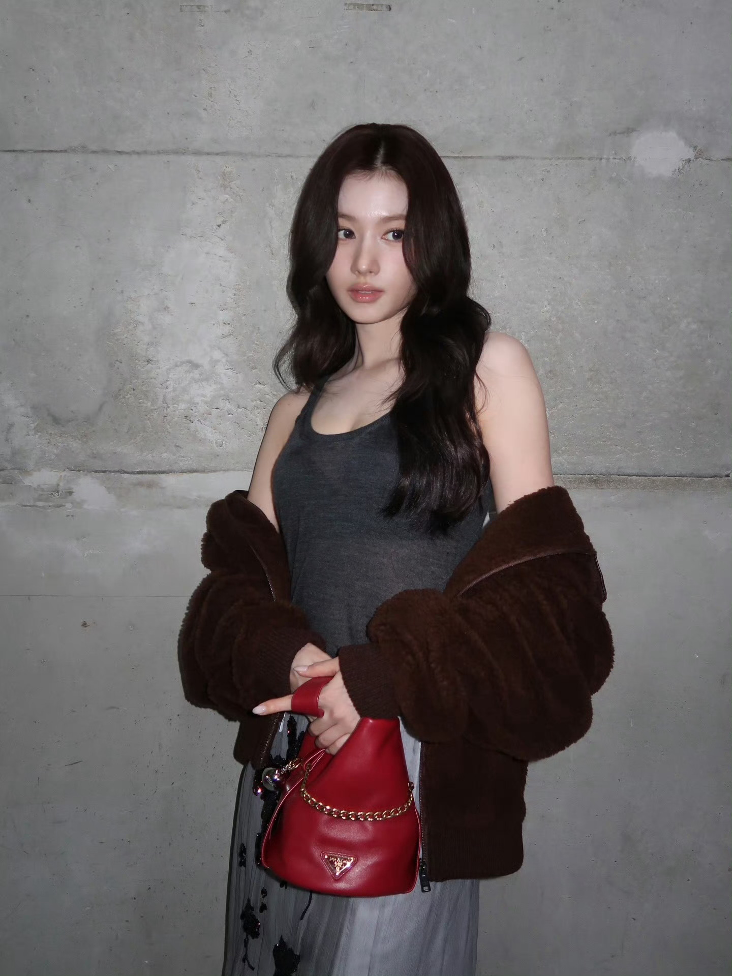 凑崎纱夏Sana x Prada 假日系列宣传照❤️🌷Prada Petit Sac Noir红色皮革手袋