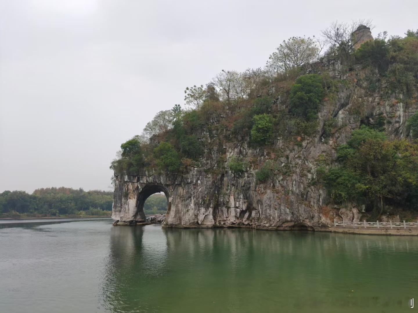 不到象鼻山,不算真桂林,以前鼻子下面可以过去,普贤塔已在象鼻山上竖立几百年了。桂