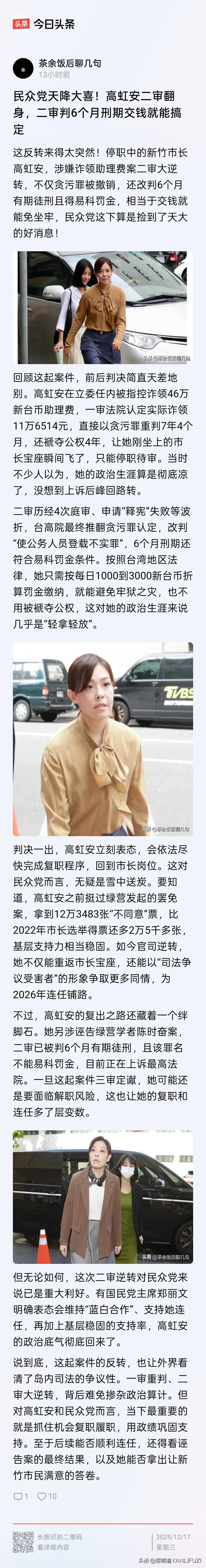 又扣分了,我真的没抄袭! 昨天发了一篇“高虹安脱贪”的消息。可是到晚上,却发现被判为脉络相似扣5分。 我只好申诉了。 但是,真的不知该如何申诉。粗略看两篇文章的确相似。高虹安案件的事,你要陈述,很可能是雷同的。因为引用二审结果必然相同,回顾高虹安犯案历程也应该相同,对高虹安能否参选2026的判断,也可能相同,引用郑丽文黄国昌的态度也有可能相同。 而这4点,我写的与他那一篇脉络是极其相似的。 他那篇没有的是,①如果高虹安不能选2026民众党会提名邱臣远。②内政部门已表示为高虹安办理复职。 我附上了,我询问豆包的“高虹安还会不会被提名?”和 “郑丽文、黄国昌对高虹安的态度?”的截图。我说如果我是抄袭,我询问豆包干什么? 事实上,我开始写时是上午10点,可是因为进山办事,12点半才发来,而那一篇比我早发了一个小时。 就这样判定脉络相似扣分,实在有点冤。辛辛苦苦搞了一个多小时,不仅不推,还扣了分。各位大仙,你们谁遇到过!