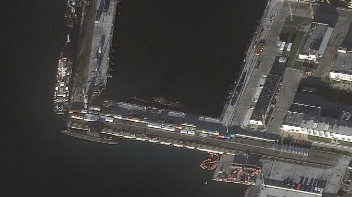2025年12月无人攻击潜艇作为反舰武器的历史性首次使用。 在黑海海军要塞新罗西斯克,俄罗斯海军改进型基洛级柴电潜艇情况。 卫星图像证实,潜艇停泊在新罗西斯克港的一个码头。码头本身在攻击中受损。 事发后的影像显示,改进型基洛级潜艇,也称为636.3型瓦尔沙维扬卡型,处于事发前的相同位置。状况发生时停泊在附近的另外两艘潜艇已移动。其他潜艇和舰船仍在停泊处,包括受损码头外缘。