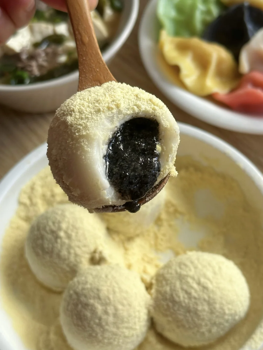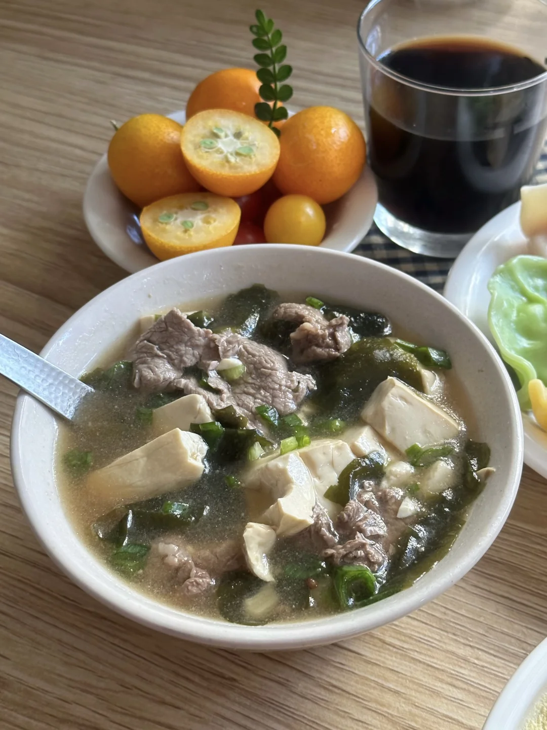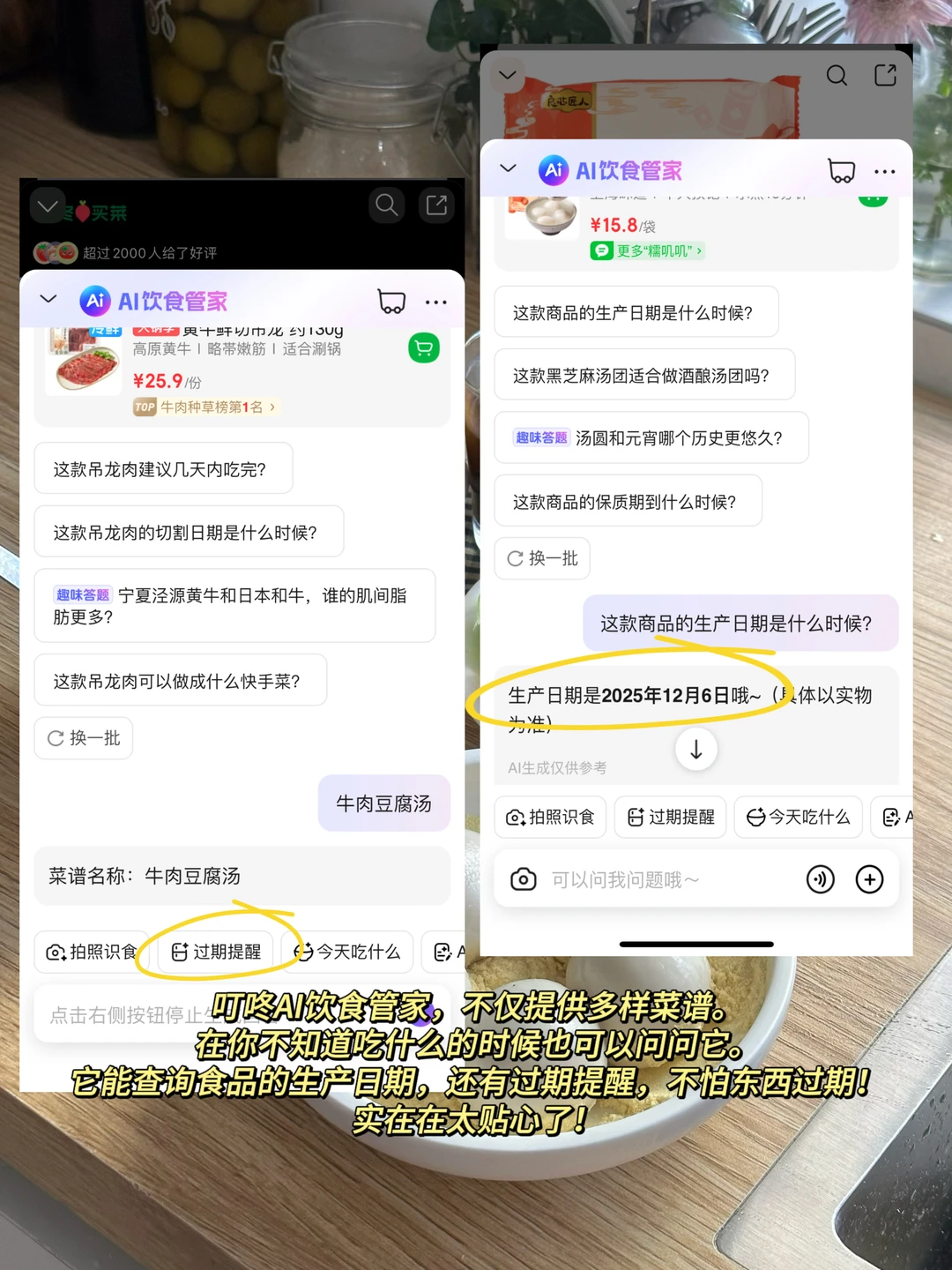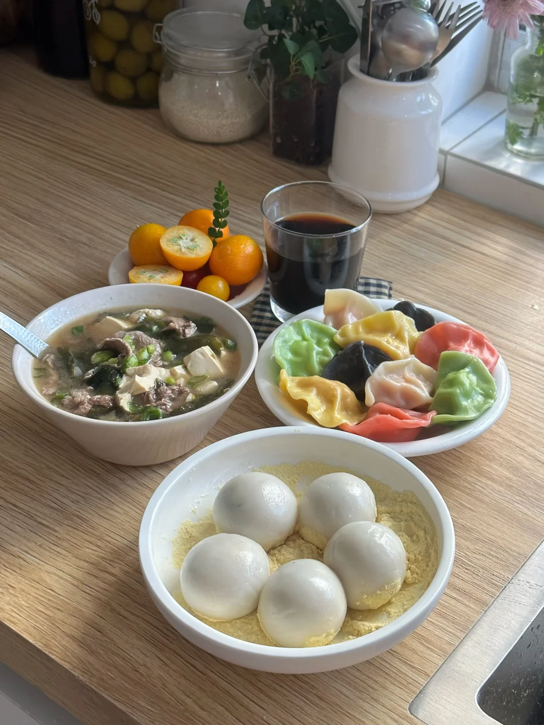 快到冬至啦,你们那儿冬至是吃汤圆还是饺子?反正成年人不做选择,今早两样都提前吃上了! 🍡良芯匠人x七宝老街风味黑芝麻大汤团 又在叮咚买菜一键采购了,居然有七宝老街风味的汤圆了,它家这个汤圆个头是相当的大了!今天试了个新吃法——糯叽叽芝麻馅驴打滚,煮好的大汤圆在豆浆粉里滚一圈就好。刚煮出来的胖乎乎的糯米团子,看着就可爱,裹上豆浆粉后豆香扑鼻,配上里面流心的黑芝麻,层次感一下就上来了,真的绝配! 🥟良芯匠人五福临门珍味五彩海鲜饺 这个饺子还挺有意思的,是果蔬汁调染成彩色的!煮出来摆在盘子里特别热闹,心情亮丽。咬开里面料挺足的,五种不同的海鲜料,这个绿色的有整只虾仁,能尝出海鲜的鲜甜,皮也Q弹,感觉像是把过节的小小丰盛感,都包进这一盘里了。 🍲裙带菜肥牛豆腐汤 裙带菜一煮就软了,和嫩豆腐、肥牛一起咕嘟咕嘟煮出来,汤头特别鲜。冬天早上就爱喝点这种热乎乎又带点咸鲜的,配着汤圆饺子吃,暖和又落胃。 🍊金桔 + ☕️咖啡 最后来几颗金桔解解腻,再喝杯咖啡醒醒神,完美的早餐搭配~ 用了那么久叮咚买菜,最近才发现它的“AI饮食管家”新功能,真的超出预期!它不仅能提供美食灵感,还会清晰显示食材的生产日期和保质期。对于我这种总忘记查看冰箱食物状态的人来说,简直太友好了——再也不用担心东西放过期,吃饭安排也更省心了!