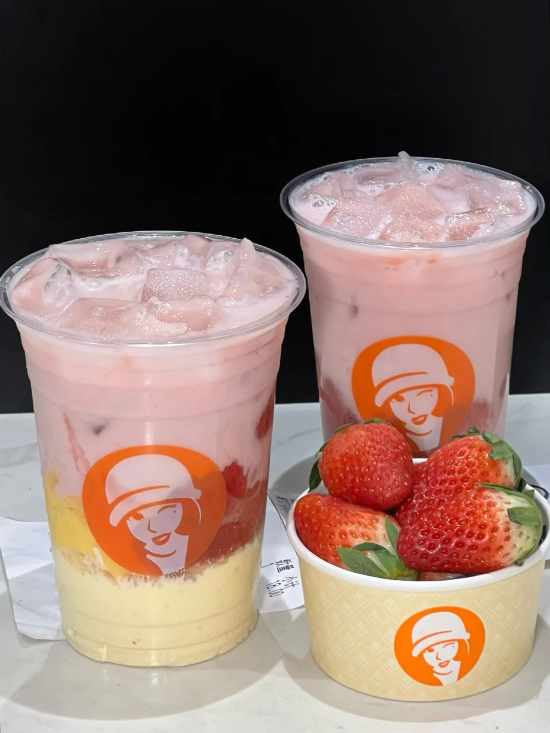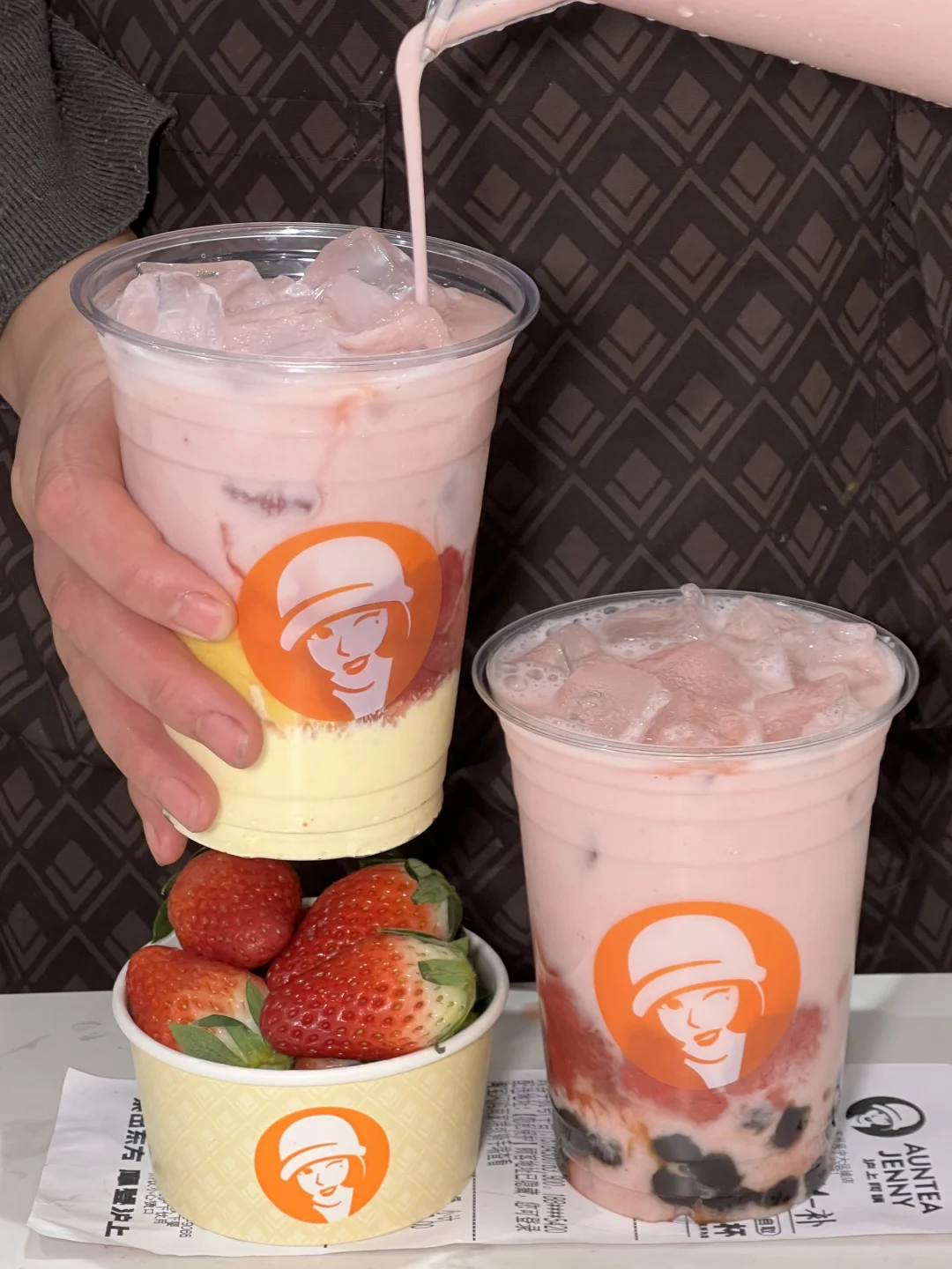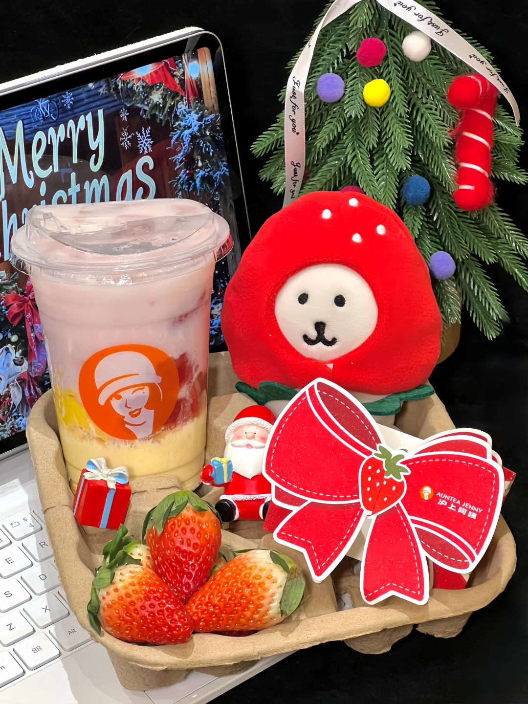 啊啊啊啊!婶子这次的草莓系也太好喝了吧!! 🍓草莓慕斯蛋糕牛乳茶!酸酸甜甜的草莓混合着草莓蛋糕酱,奶fufu,巨清新,好像在喝一杯液体草莓小蛋糕🍓🍰【红颜草莓+慕斯蛋糕酱】这两组合在一起太妙了🤤喝第一口就被惊艳到了!每一杯还有3-4红颜颗草莓,一口下去果香、乳香、茶香在嘴里层层化开,真的太满足啦🤤 🍓QQ美莓奶茶 喜欢清爽挂的姐妹闭眼冲这杯!黑糖波波口感qq弹弹,嚼起来好上头,酸甜的草莓汁混合着混着奶香,喝起来清爽不腻,一口一口根本停不下来!!加上有热饮可以选择,圣诞也要温暖一整天!