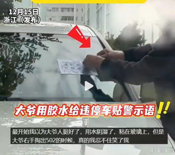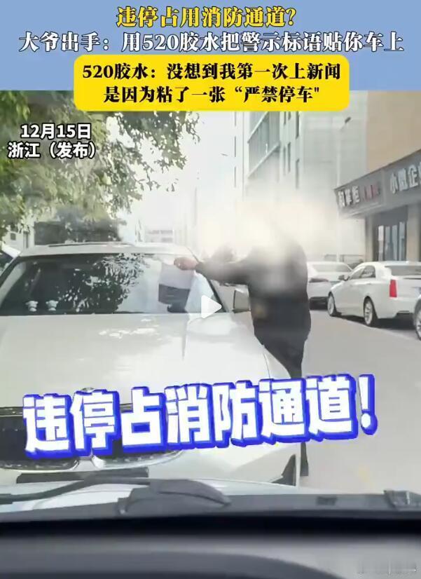 这下热闹了,违停车主估计要很恼火,但是报警有用吗?没用的,人家是老头,无法选中你懂的。话说回来,在消防通道上违停本身就是不对的,既然车主你停车不讲究,那就别怪正义之人站出来制裁你了~大爷用502胶水给违停车贴警示语