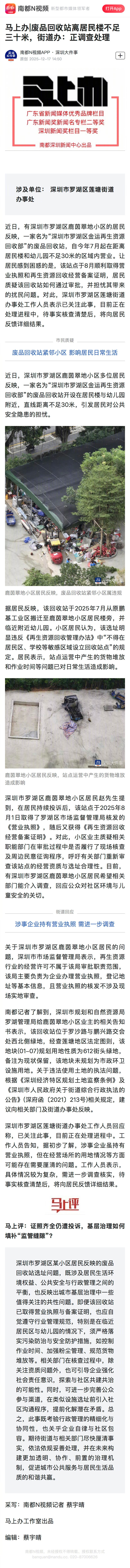 #街道办调查废品站离居民楼不足30米#【废品回收站离居民楼不足三十米,街道办:正调查处理】#废品回收站距居民楼不足30米引争议##谁该为家门口的废品站负责#近日,有深圳市罗湖区鹿茵翠地小区的居民反映,一家名为“深圳市罗湖区金运再生资源回收部”的废品回收站,自今年7月起在距离居民楼和幼儿园不足30米的区域内营业。让居民感到困惑的是,该站点于8月顺利取得营业执照和再生资源回收经营备案证明,居民质疑该回收站如何通过审批,并担忧其带来的扰民问题。对此,深圳市罗湖区莲塘街道办事处工作人员回应称,已关注此事,目前正在处理进程中。工作人员告知,据初步了解,涉事企业虽持有营业执照,但在经营场所的用地情况等方面可能存在需要厘清的问题。工作人员表示,具体情况较为复杂,需进一步调查核实,待事实核查清楚后,将向居民反馈详细结果。南都N视频记者 蔡宇晴
