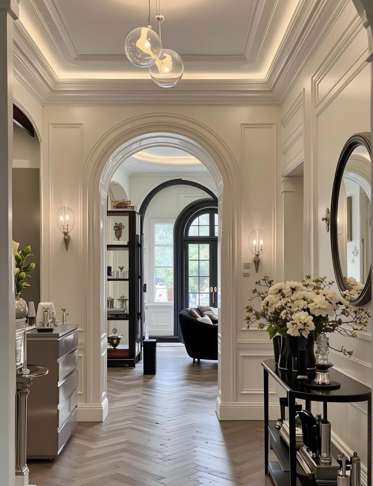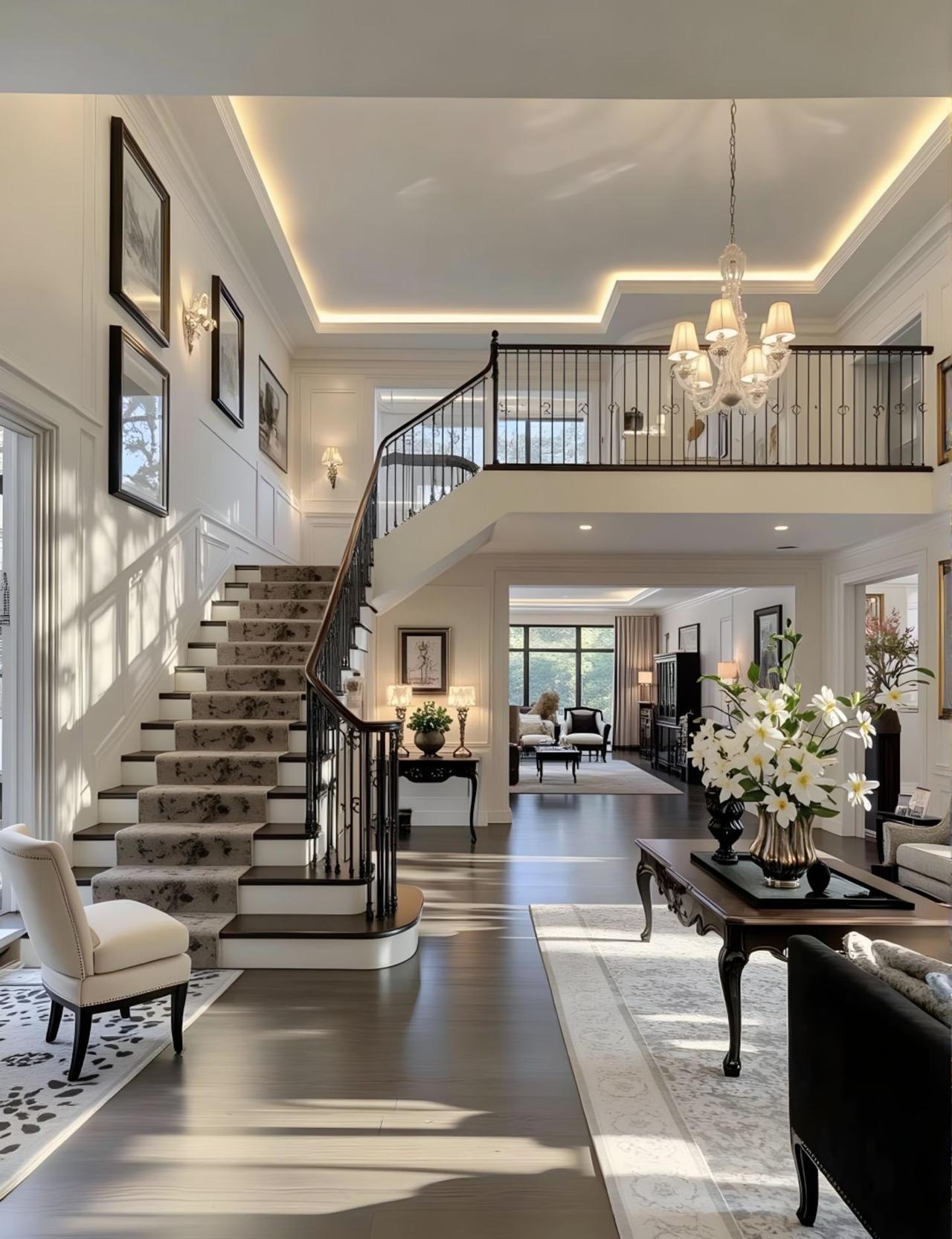 黑白法式别墅像一块冷冽的芝士蛋糕,外表高冷,入口却甜。 我去年在巴黎看房子,被Jean-Louis Deniot的样板间闪到:黑钢门框嵌了0.5毫米香槟金,灯一开,金线像心跳闪,一秒破功“老钱”沉闷。 中介悄悄说,这金箔是回收香槟瓶盖熔的,环保又便宜,我当场把“奢华=浪费”的旧笔记划掉。 国内照搬别傻砸钱。 把客厅主灯换成可声控的磁吸轨道,黑壳金芯,淘宝价800元,同款氛围立刻到位;踢脚线用回收大理石边角料,切割75毫米高,黑白根纹理自带雕花感,成本降四成。 最实用的是把挑高二层封出3平米工作凹室,落地窗留半墙,白天省灯,夜里抬头能看见自己偷闲的影子——豪宅的奢侈从来不是面积,而是留一点浪费给灵魂。