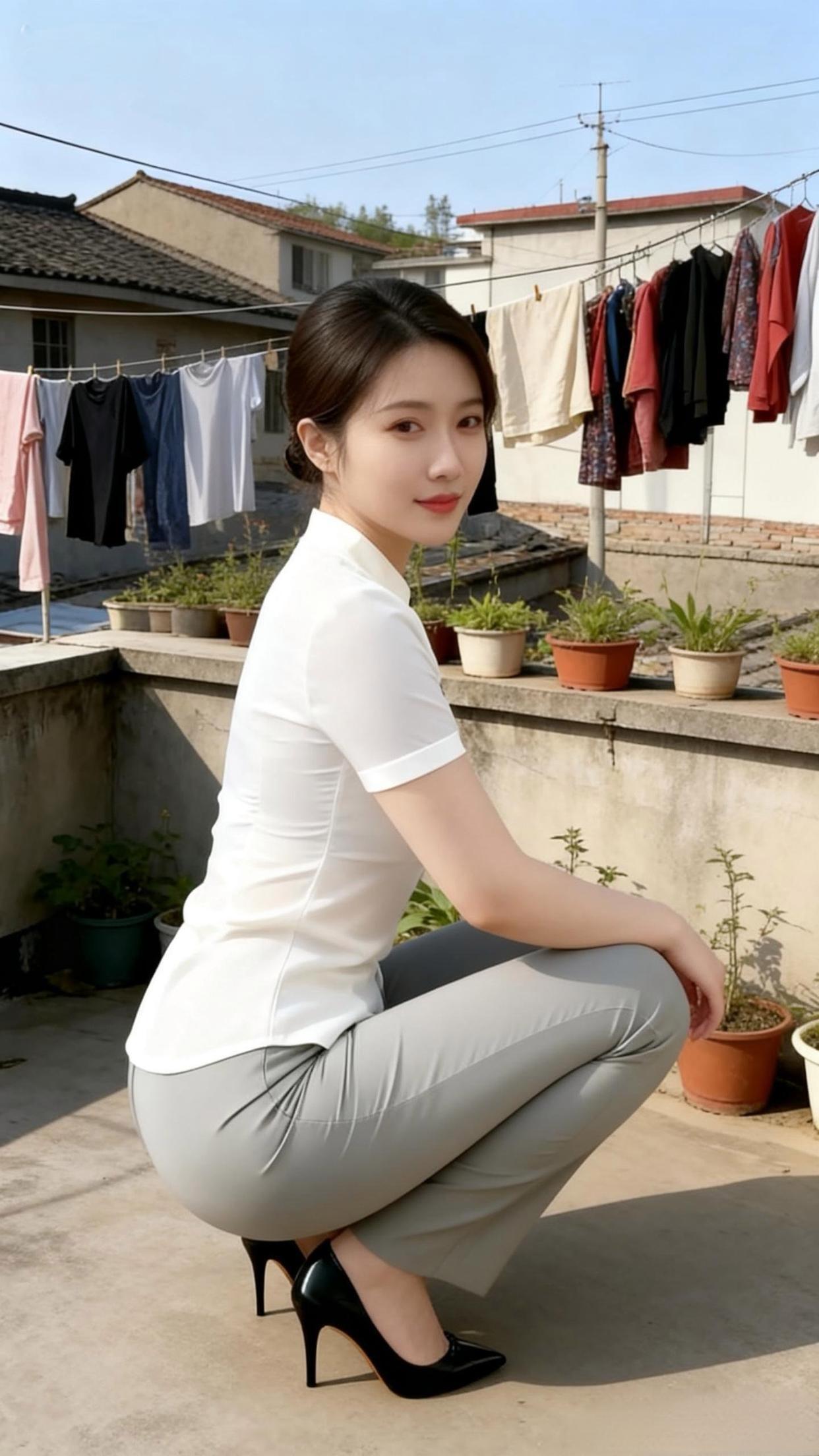 都市雅致穿搭,简约白衬衫搭配灰色西裤,尽显职场风范。
