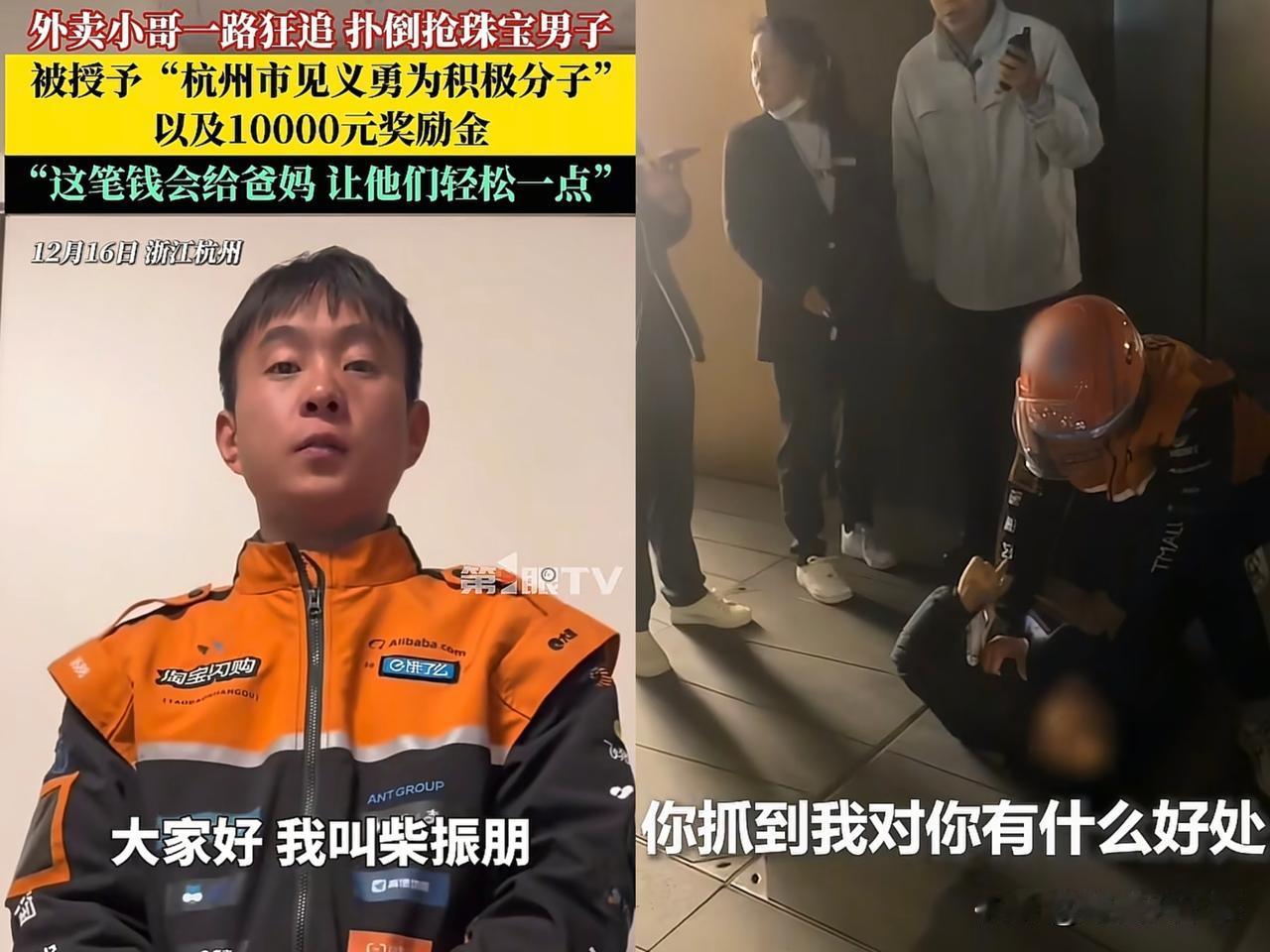 网友们的担心不是没有道理,因为歹徒在被制服时曾说:抓我有什么好处! 其实外卖小哥柴振朋就是单纯的见义勇为,他在出手和歹徒对抗时就没想过自己能得到什么好处,就连事后平台的嘉奖,他也是第一时间全寄回家给父母花。 但歹徒能在众目睽睽之下当街抢劫,想必也是走投无路了。 都说“光脚不怕穿鞋的”,面对一个走投无路的人,谁知道他出来后会不会报复。 说白了,就是应该要给外卖小哥做好隐私保护,起码给他打个码,不要让他暴露出来。 但现在已经晚了,因为外卖小哥自己都有账号,而且在制服歹徒时他就已经露脸了,这时再打码的意义不大。 但网友的担心也不无道理,歹徒可能用不了多久就会出来,还是要防患于未然,重点对他保护起来。