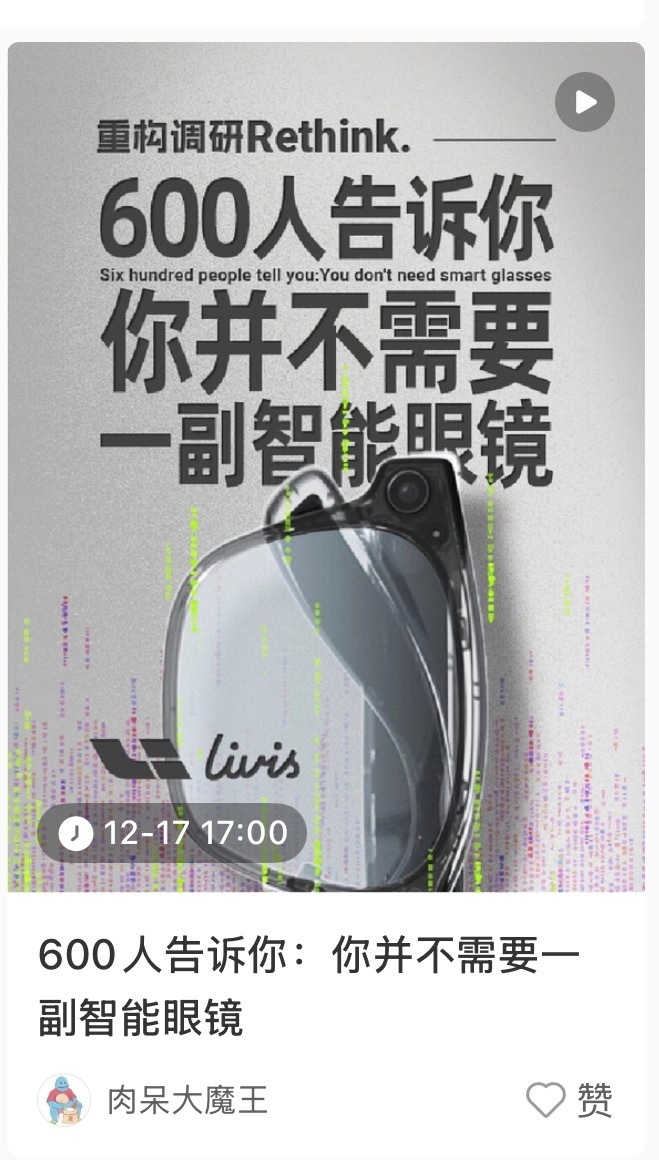 一会儿关于智能眼镜的调研视频就要发了,趁着这个机会,说一下我对这个品类的看法。我们之前接到过调研智能眼镜用户、市场的需求,我们访谈了真实用户、潜在用户,也反复拆解过不同厂商的产品路径,在长达8个月的调研中发现,智能眼镜不是一个“做得不够好”的品类,而是一个“被高估为刚需”的品类。大多数用户并不排斥智能眼镜,甚至在第一次体验时会觉得“挺酷”“挺方便”,但问题出现在第二周、第三周——它很难进入日常高频使用的那条轨道。不是性能不行,而是生活里没有那么多必须戴它的理由。智能眼镜更像一个体验型产品,而不是入口型产品。它对于体验来说挺加分,但很难成为日常必需品;有惊喜,但难以让用户形成依赖。更关键的是,当前几乎所有智能眼镜的价值,依然建立在“替代手机一部分能力”之上,而手机本身,已经是一个过于成熟、过于强大的计算、生活、工作、娱乐中心。所以我个人的判断是:智能眼镜会长期存在,但很难在短期内成为大众级爆品。它更适合被当作某些特定人群、特定场景下的“生产力工具”,而不是下一代计算平台。