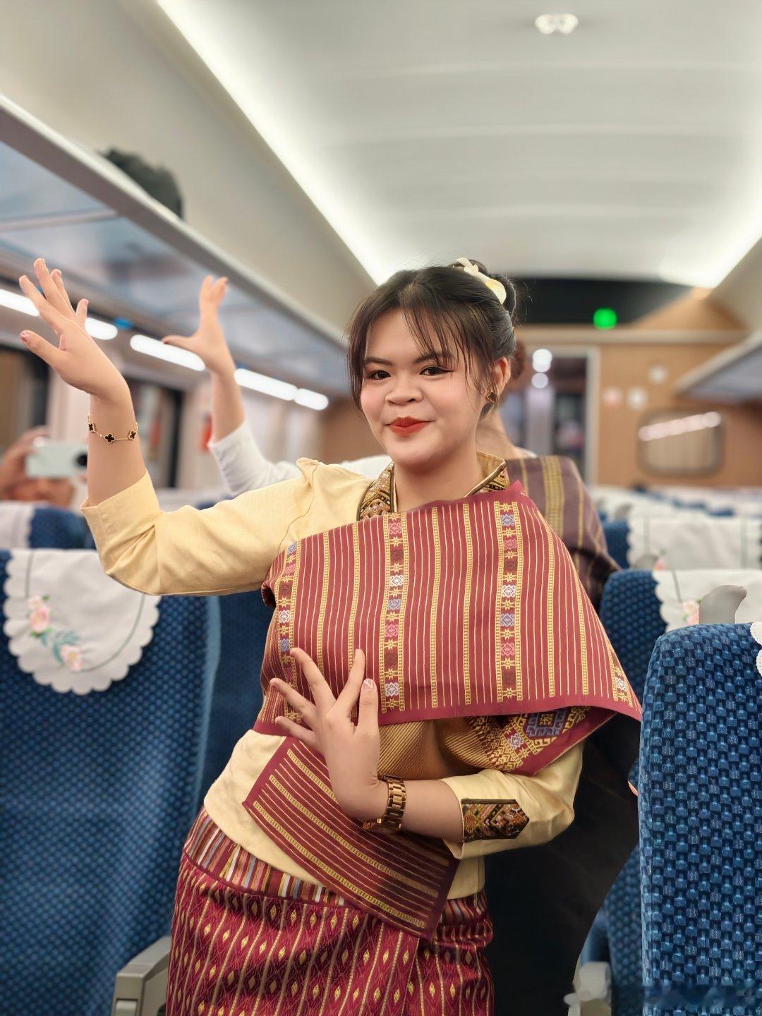 从昆明南出发,坐上中老铁路国际旅客列车,一路向南抵达磨憨。窗外是不断变换的云南山川,而坐在车厢里,还能喝到一杯跨国咖啡——云南小粒咖啡的醇厚+老挝咖啡豆的明亮风味,不愧叫「一路咖香」。这一口,不只是咖啡的香气,更像是把两国的风土、人情与故事,一起慢慢冲泡出来。这趟列车不只是交通工具,更像一座行走的文化客厅。舞蹈、诗词朗诵、不同国家年轻人的笑脸,让我真切感受到:中老铁路连接的,不只是城市与国境,还有生活方式与情感的靠近。☕️列车上的现磨咖啡,价格很接地气——20元一杯,还送一个云南鲜花饼。中老铁路是宏大的跨国通道,但真正打动人的,是这些细碎的小瞬间:一杯咖啡、一口鲜花饼里,藏着实实在在的民生温度。中老铁路上还藏着很多贴心的设计:有照顾重点旅客的适老服务,也有不少“小而美”的精细举措。配合跨境出行需求,列车上还提供“铁路+旅游”的便捷服务,比如乘务员在核验证件时会主动提醒扫码“丝路漫游”二维码,出入境流程、沿线景点介绍、当地风俗禁忌都能一站式了解。对第一次跨境出行的人来说,这些细节,真的很加分。❤️中老铁路上的经济密码 西双版纳·磨憨站