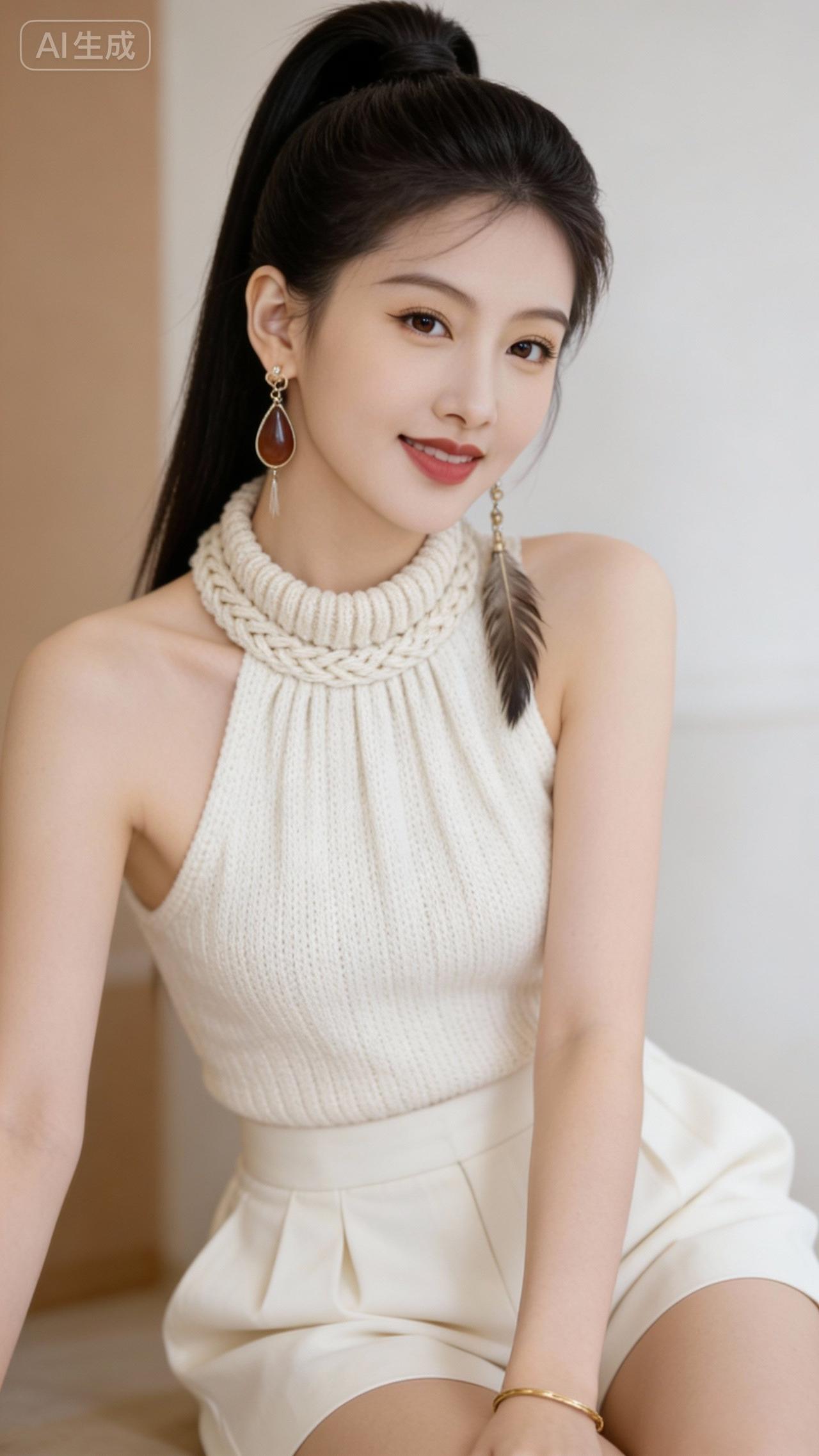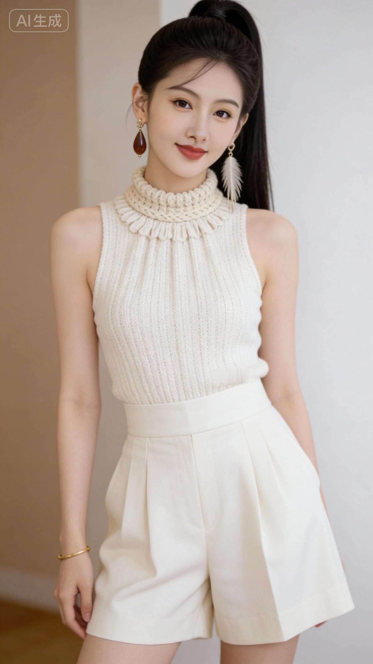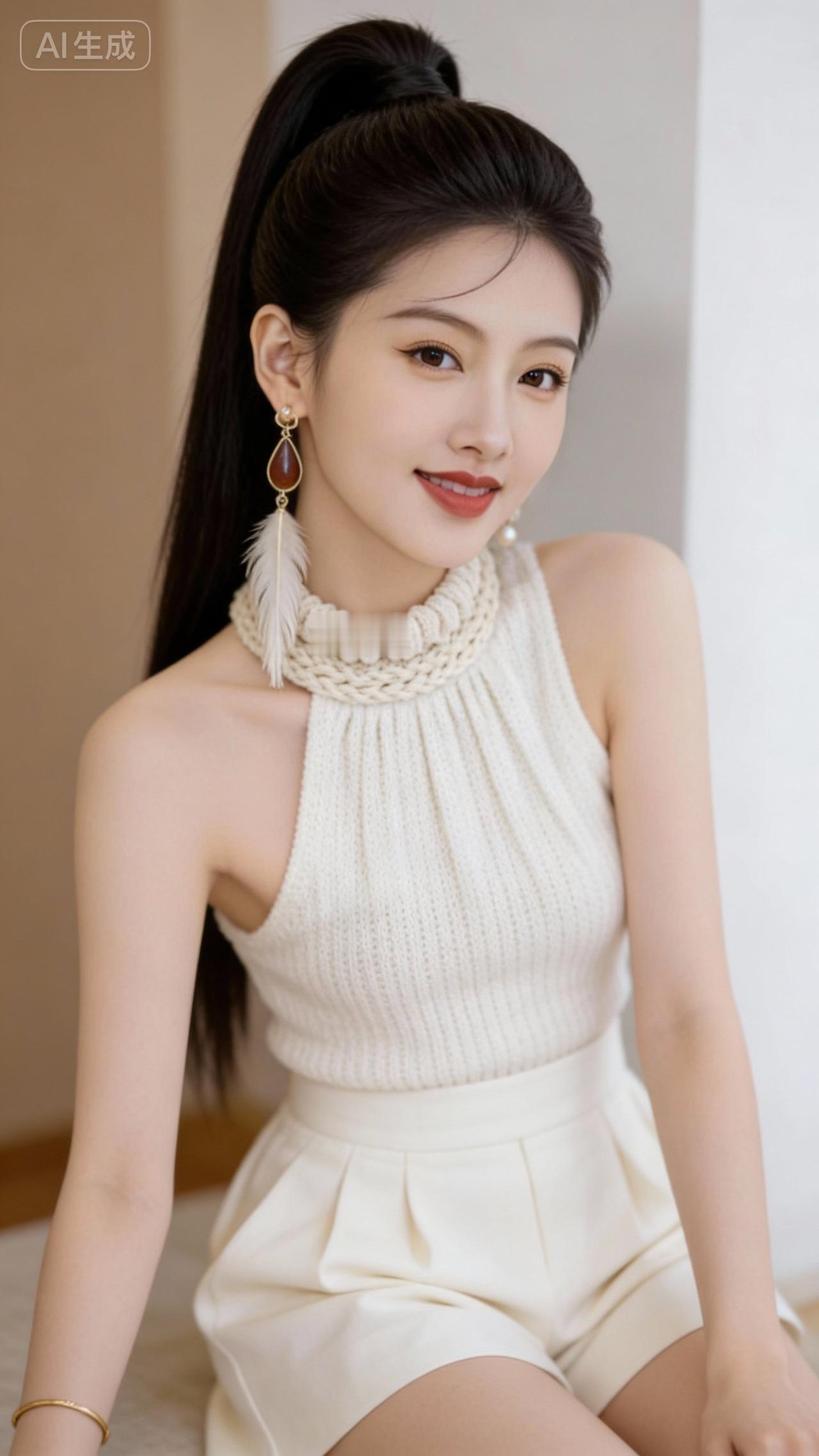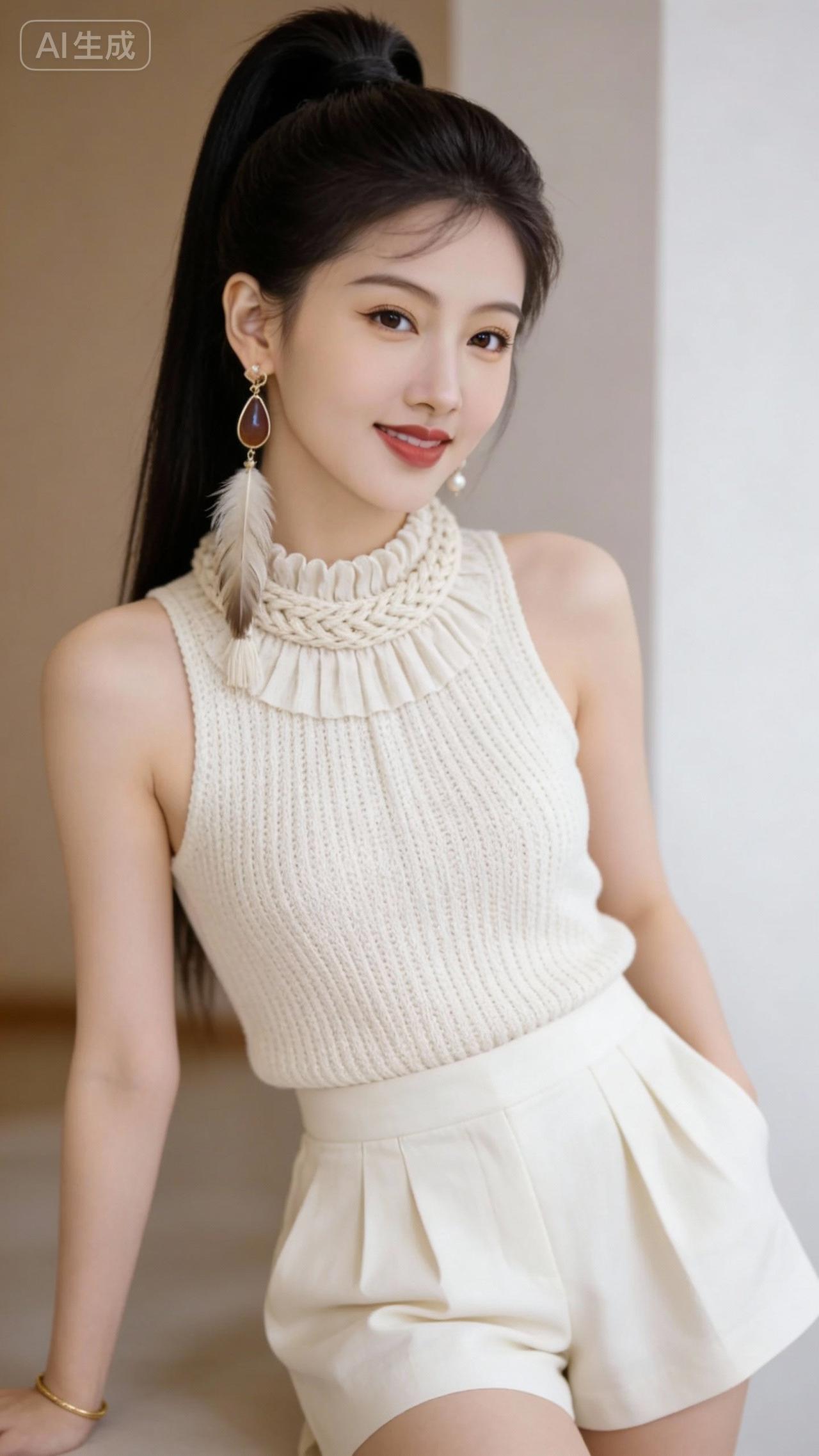 一位青春靓丽的东方美女,身材窈窕,皮肤细腻白嫩有光泽,柔顺乌黑的长发自然披在肩头