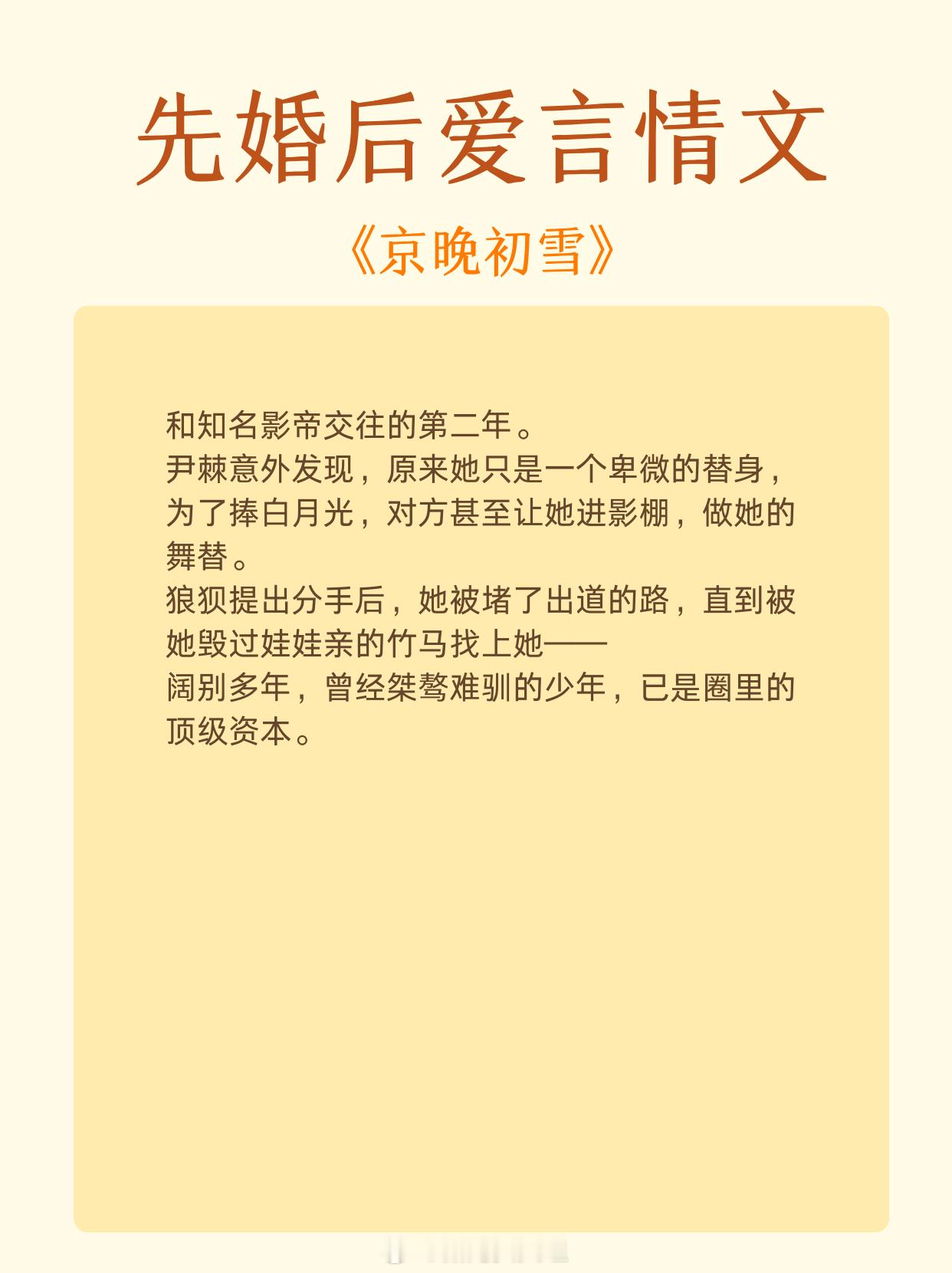 天花板级的先婚后爱言情文,扭转所有所有的不可能。1、《恃宠》作者:臣年2、《错嫁