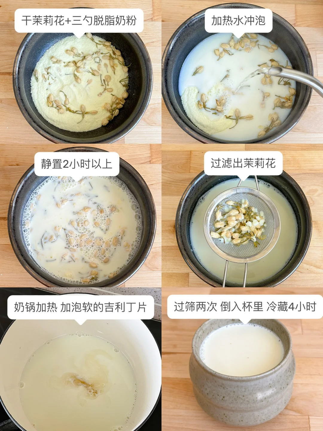 茉莉花加脱脂奶粉 用热水冲泡 静置2小时