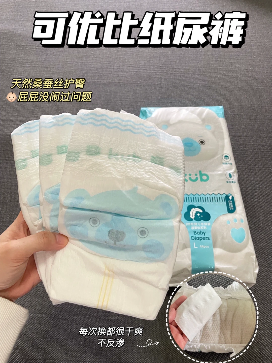 🔹新手爸妈如果刚开始不知道选什么纸尿裤的话,可以试试可优比纸尿裤,摸上去软乎乎的。之所以这么柔软,是因为它的细旦指数才0.8D(市面一般1.2D),手感比普通的纸尿裤都要舒软很多。它还添加了天然桑蚕丝,可以滋养宝宝的小嫩臀,很适合新生儿贴身穿戴。而且很轻薄透气,秋冬衣服多也不会闷。