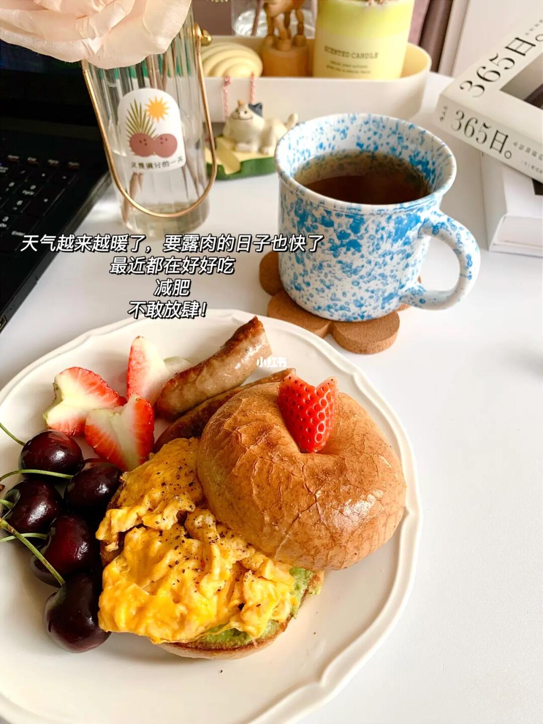 2022.2.27|减脂305天|减重29斤! 🔸初始体重120斤 🔹现重90.4斤 🔸目标85斤 🔹身高150cm ——————————————————————— ☀️早餐分享 🍳早餐:牛油果贝果滑蛋|车厘子|草莓🍓|敖东酵素原液|煎肉肠 🏃‍♀️运动:不动 💧喝水2000ml➕ ———————————————————————— ——天气开始变暖了,你做好准备了没有?只要不放弃忍一忍就可以快乐整个夏天✌🏻️ ——早餐搭配的敖东酵素原液~已经列入我姐好用物中了,她说喝了后上厕所顺畅了不少,让我给她再囤几盒😂😂因为她是个便㊙️严重者!有时一个礼拜都不拉💩~她最近缓解便秘全靠它! 我看了配料表都是水果蔬菜发酵的🧐所以味道酸酸的我还挺喜欢😍可以直接饮用也可加水稀释饮用,我一般都是早饭前加水喝~ —减脂期酵素我是家中必备的,外出吃大餐后来一条第二天老通畅了也不会肚子疼啥的。