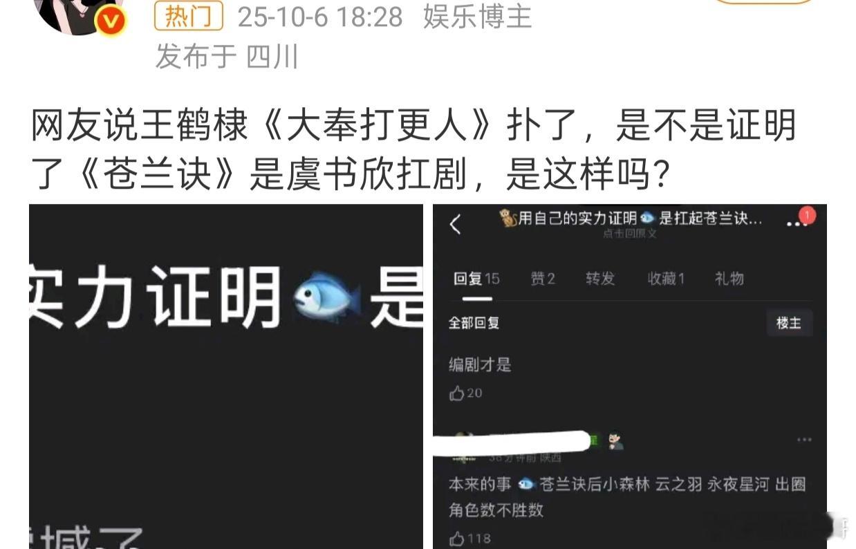 叫你提前开香槟,又被打脸了吧,苍兰诀究竟是靠谁观众都知道,说是东方青苍拯救了这部剧也不为过,而且王鹤棣的大奉打更人不扑噢反而是大爆,目前仍是2025年古装剧集均第一、4311s是全平台招商史冠。至于冬眠和双轨有没有证明扛剧能力?唉,不提了吧